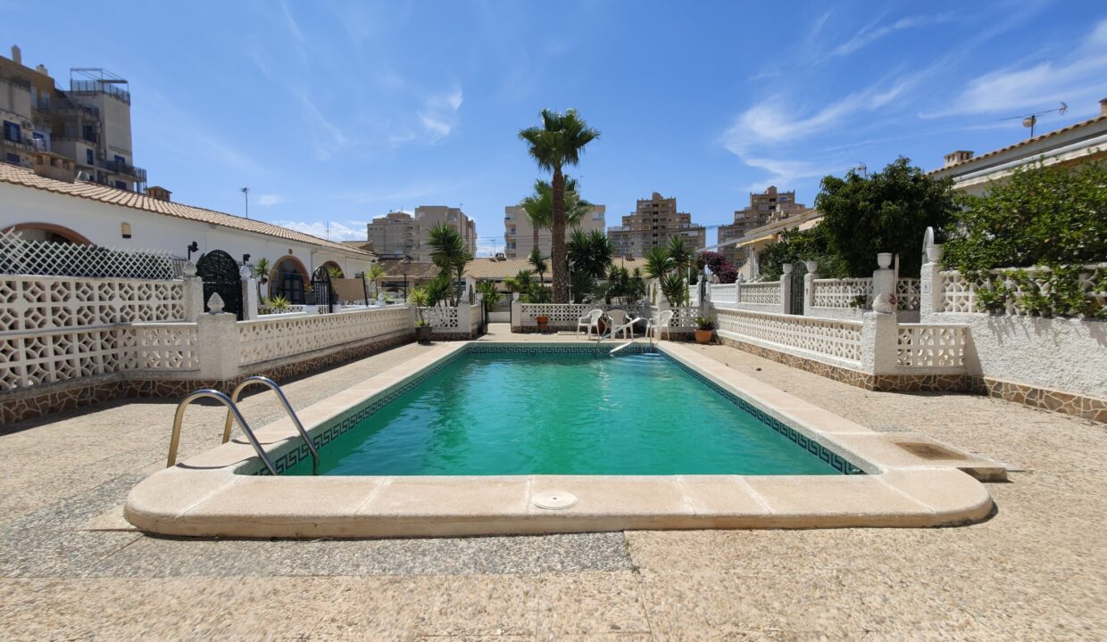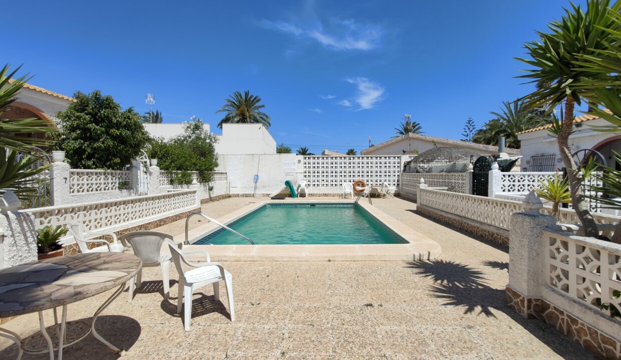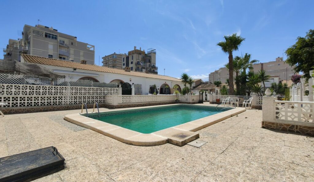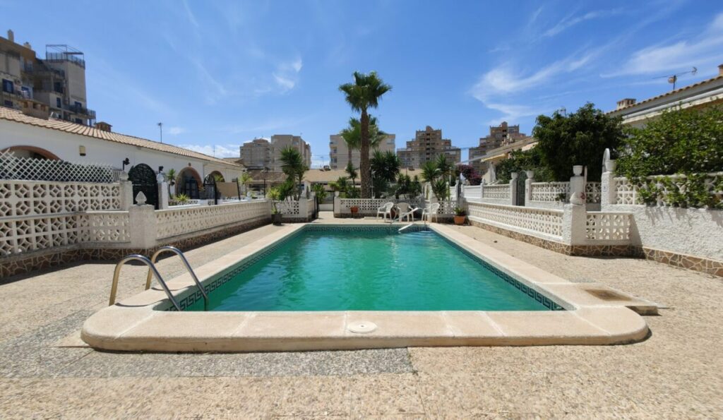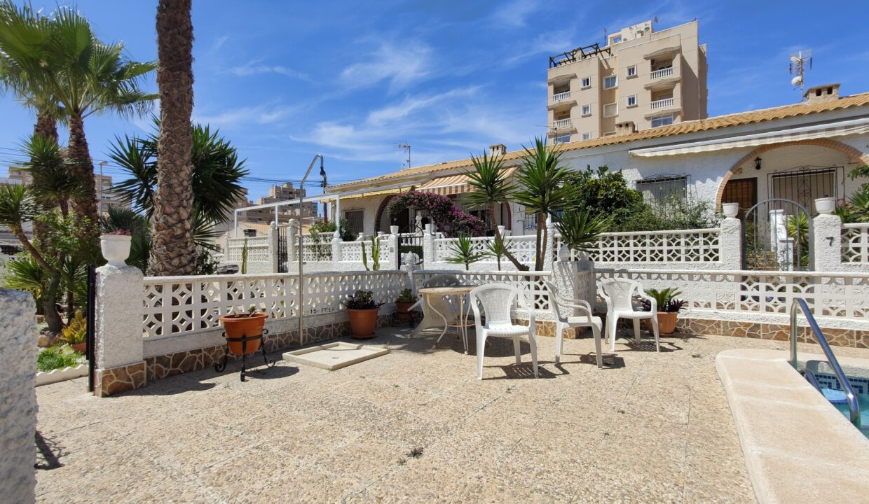 Bungalowen ligger i Nueva Torrevieja med gangavstand til hovedsentrum, stranden og strandpromenaden. Et rolig område med mange fastboende.