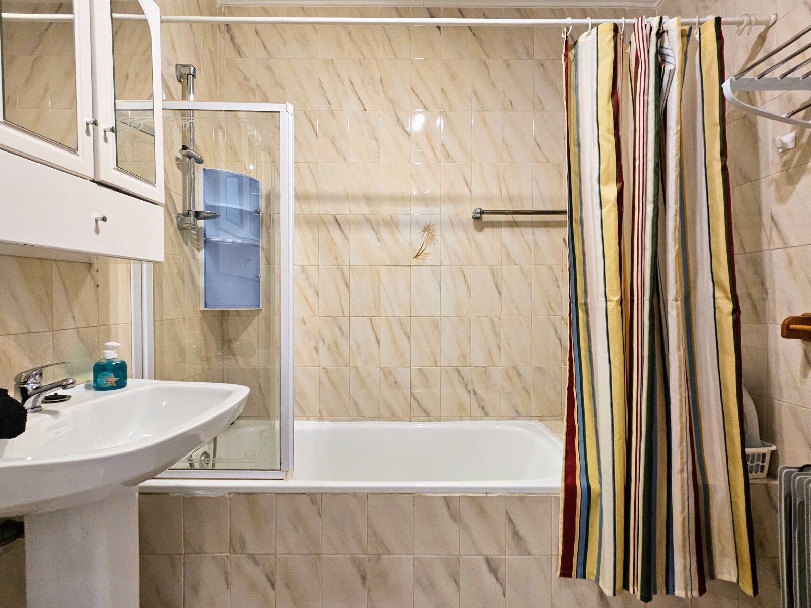 Fra inngangsdøren kommer du inn i stuen som har kjøkken bak en frokostbar. Badet har badekar og vaskemaskin.