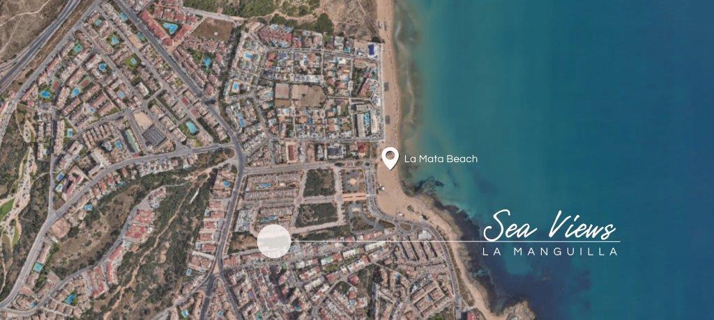 Urbanisasjon La Manguilla Sea Wievs ligger på grensen mellom Torrevieja og La Mata. Kun 300 meter fra stranden, i skråningen opp fra La Mata stranden.