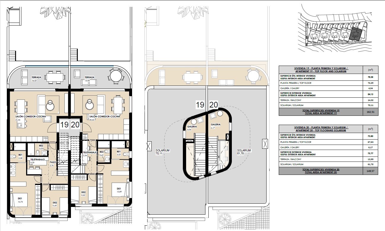 Toppleilighetene har en romslig terrasse og en stor privat takterrasse. Begge med fantastisk havutsikt. Toppleilighetene på venstre side har også en plass som kan tilpasses. Denne plassen kan passe til et kontor, et garderobeskap, et lekerom eller et ekstra rom… det er en fleksibel plass.