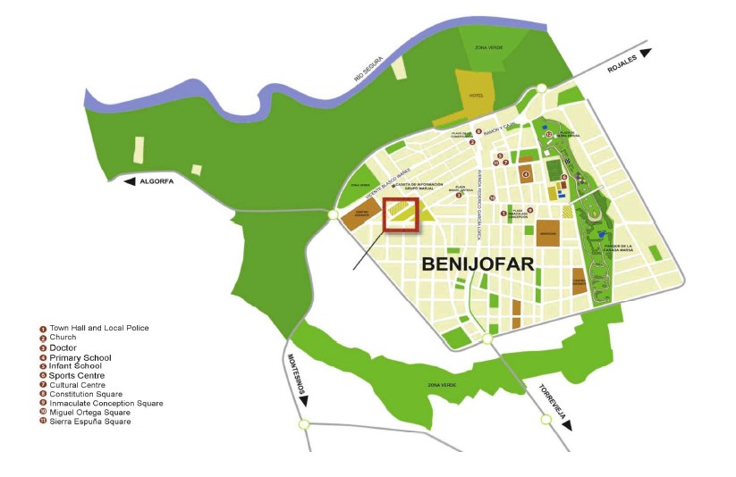 Benijofar er en liten jordbrukskommune i Alicante provinsen. Den ligger i et fruktbart lavland og elven Segura renner gjennom kommunen. I nabokommunen Rojales (Ciduad Quesada), som ligger i gangavstand fra Benijofar, er det en norsk skole som har et fullverdig undervisningstilbud for barne- og ungdomsskole, samt videregående skole. Landsbyen Benijofar har vokst i popularitet de seneste årene. Benijofar har en rekke fasiliteter som tapasbarer, butikker, restauranter, apotek, helsesenter, kommunalt basseng, sportsanlegg og mye mer. En 10 minutters kjøretur tar deg til de fantastiske strendene i Guardamar.