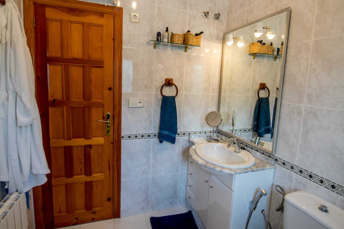 Hovedetasjen består av 3 soverom og 2 bad. Her er det nytt kjøkken i lyse farger, nytt, flislagt gulv og nyoppusset bad. Det er stor stue med plass til sofagruppe og spisebord, og god høyde under taket. Både kjøkkenet og det ene soverommet har direkte utgang til den enorme terrassen. Fra terrassen er det utsikt over den flotte hagen.