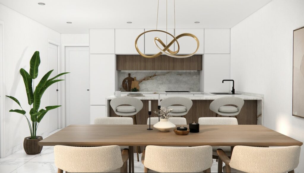 Det er et nydelig kjøkken med åpen løsning mot stuen. Her har du store vinduer og glassdører ut mot hagen og bassenget så her er det som man kaller det «indoor/outdoor living»