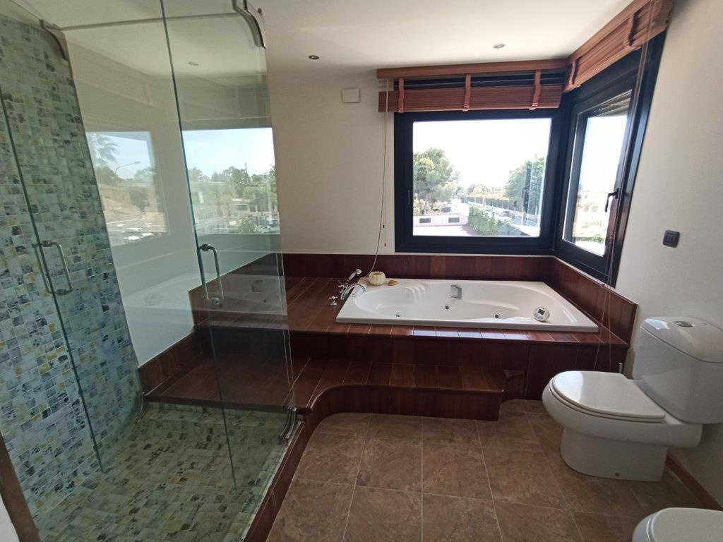 Fasilitetene inkluderer elektriske persienner, alarm, klimaanlegg, garasje for 2 biler og 4 parkeringsplasser.