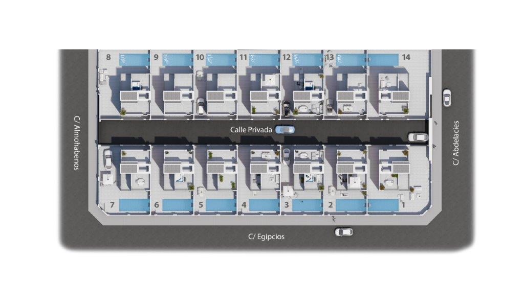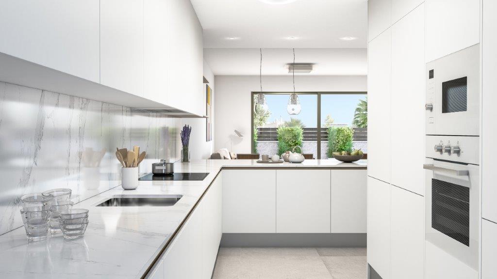 Boligene blir levert med varmekabler på badene, preinstallert klimaanlegg, kjøkken- og bade møbler og basseng på 6 x 3 meter med vannfall.