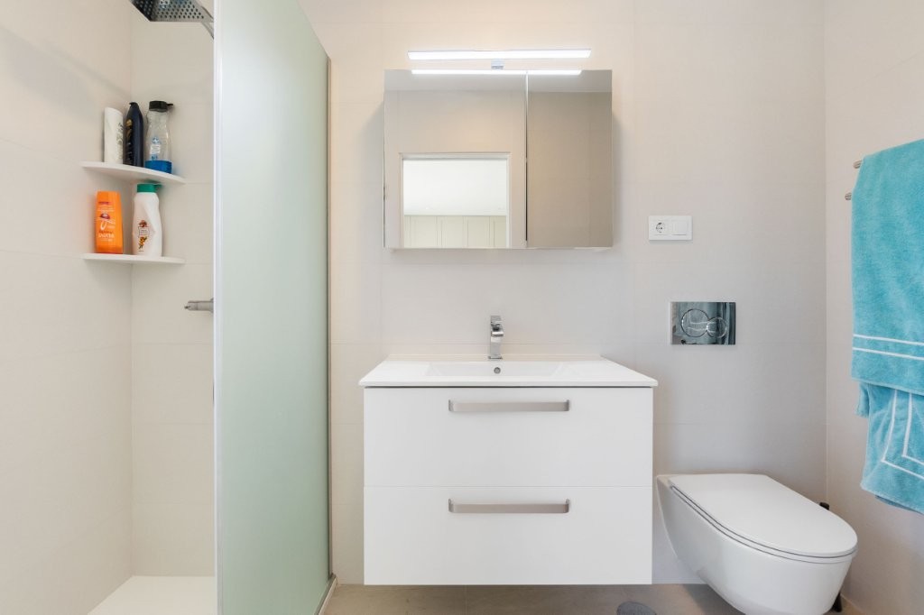 Ovenpå er det to soverom med utmerket innebygd oppbevaringsplass. Hovedsoverommet har et eget bad med dusj og tilgang til en herlig solfylt terrasse. Det er også et andre bad med dusj i denne etasjen.