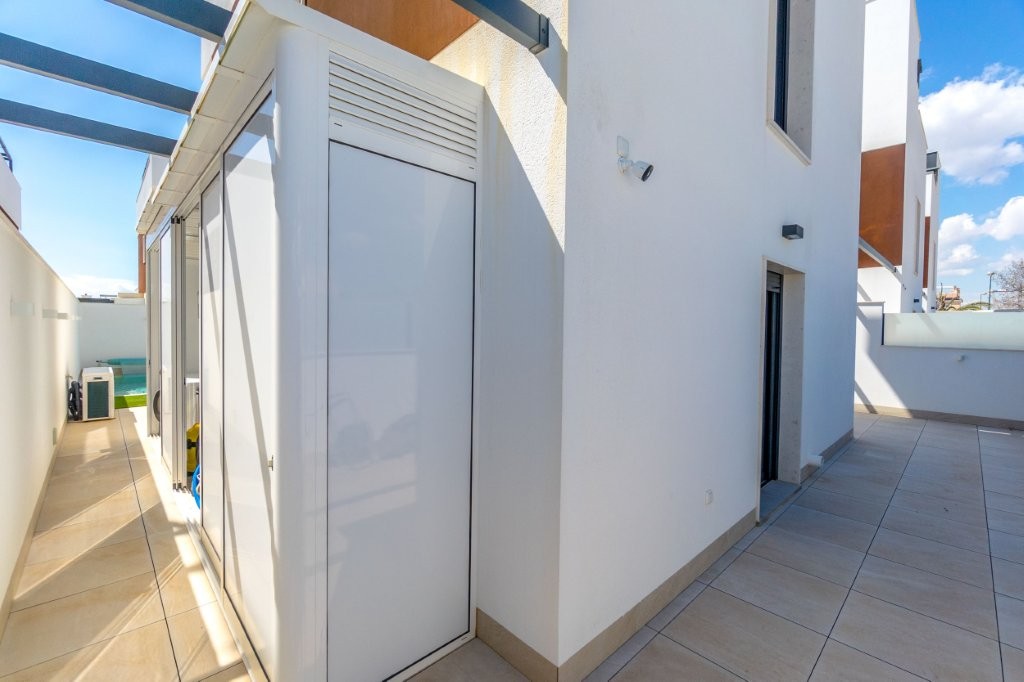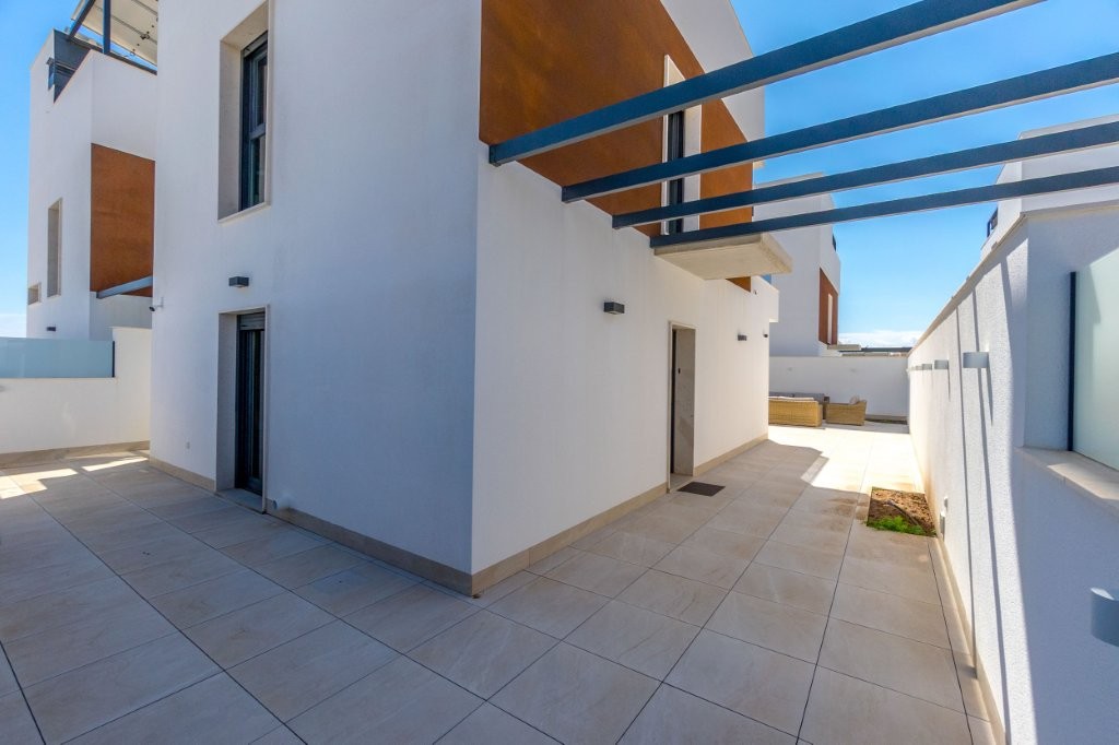 Vi har gleden av å presentere denne eksklusive villaen i moderne stil med egen tomt og privat saltvannsbasseng, beliggende i det ettertraktede og attraktive området Torre de la Horadada.