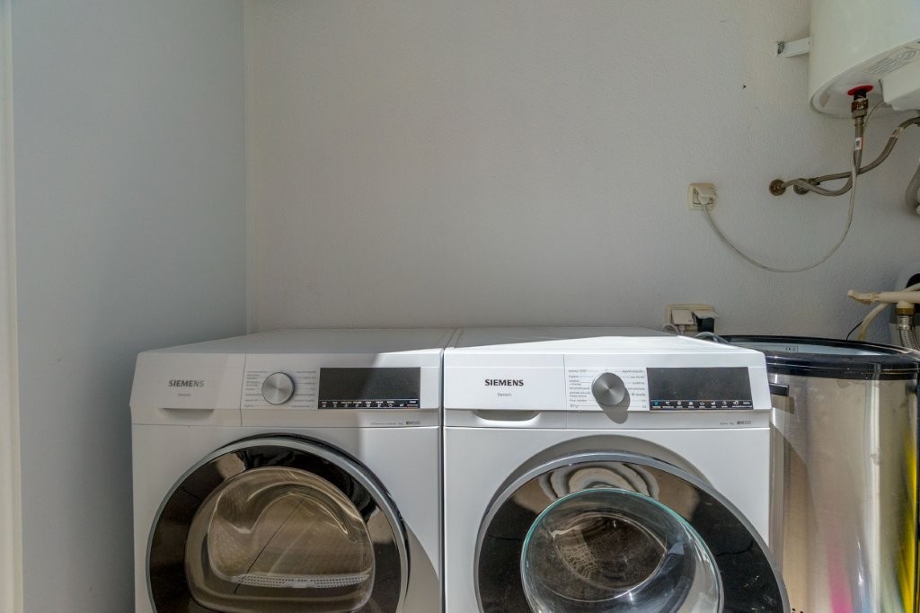 Separat vaskerom med Siemens vaskemaskin og tørketrommel, pluss lagringsplass