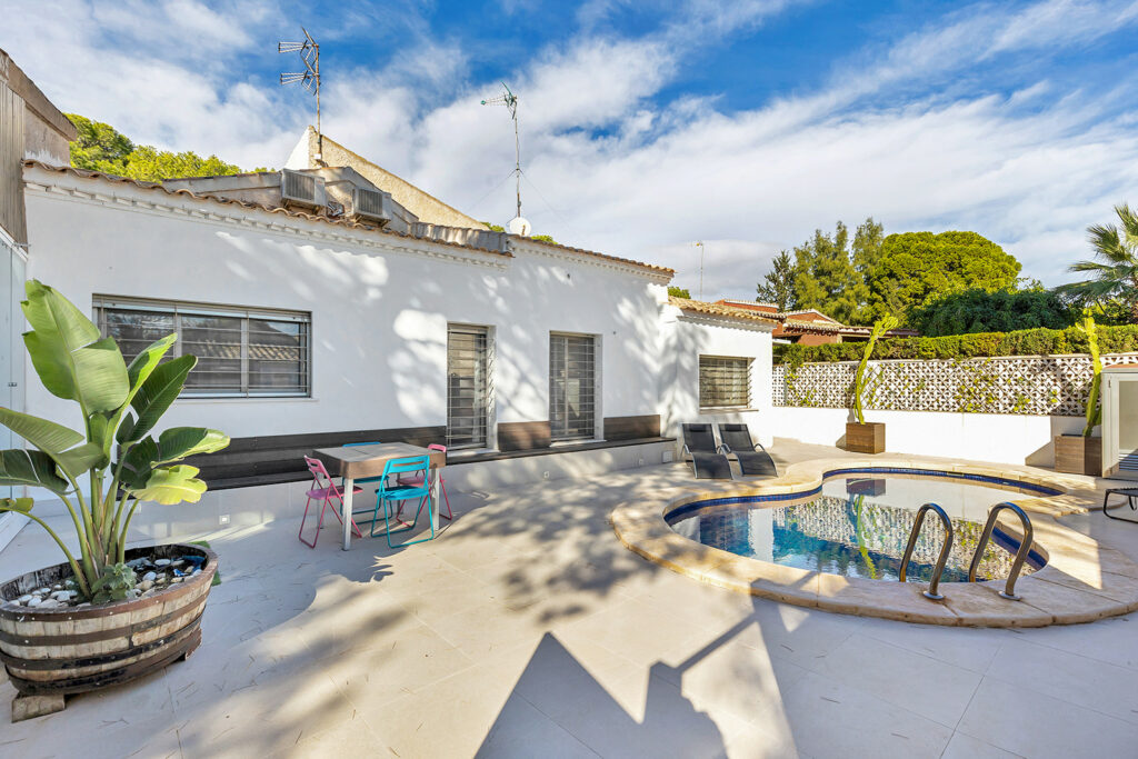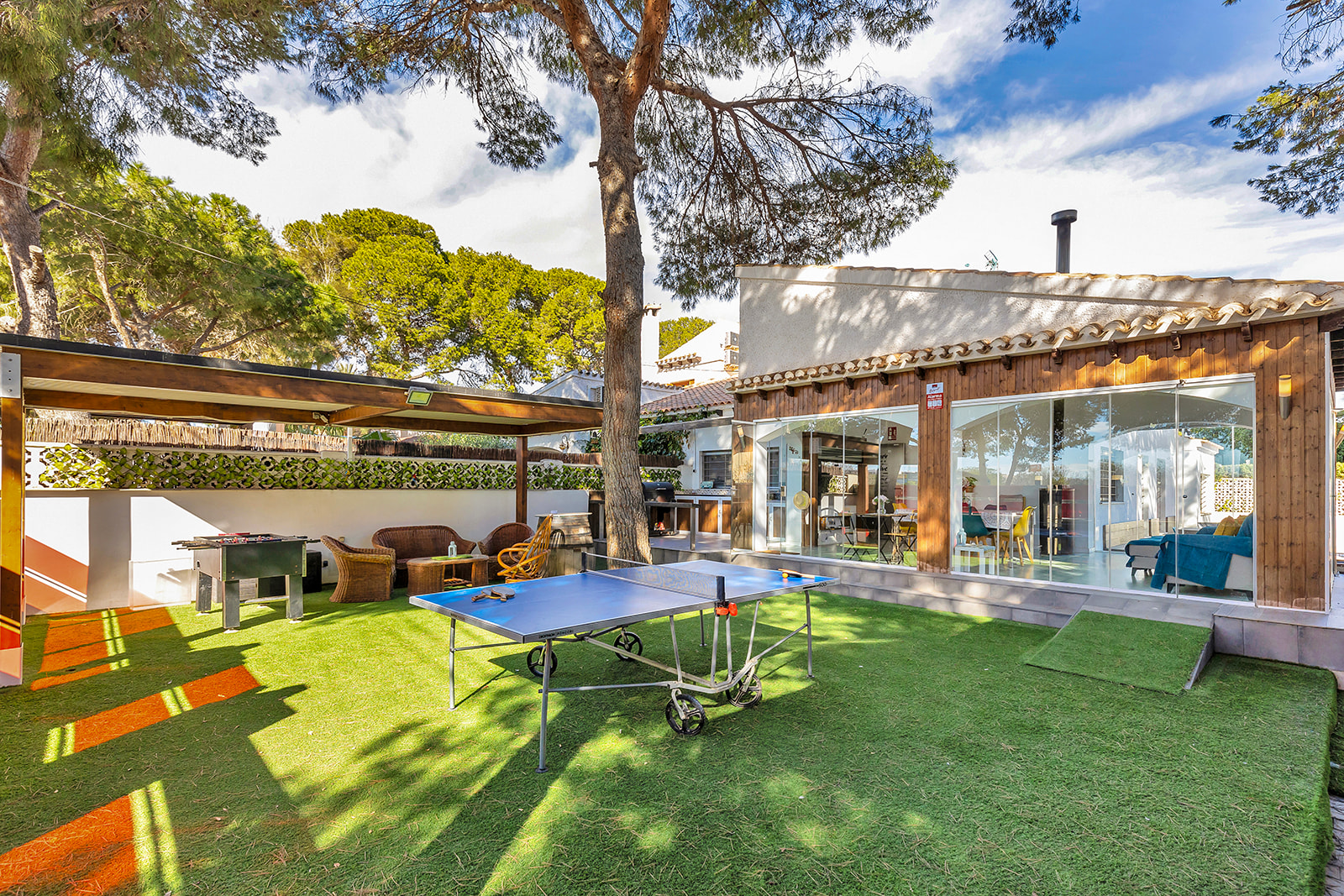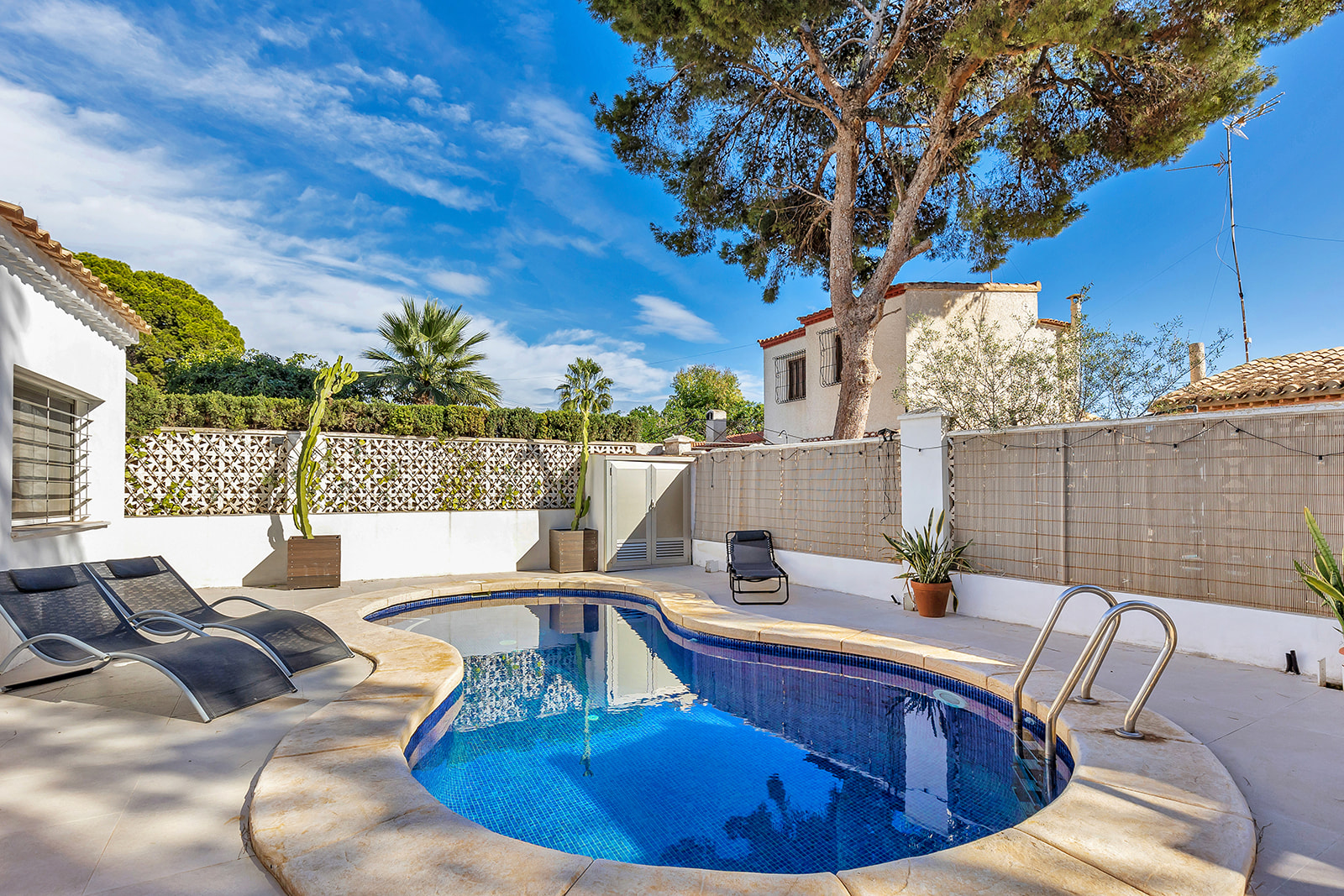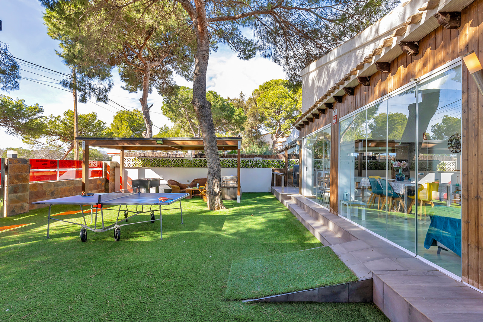 Tomten er på 450 m2 og hagen er vakker med privat basseng, utedusj, toalett, utekjøkken og flere pergolaer og sitteplasser.