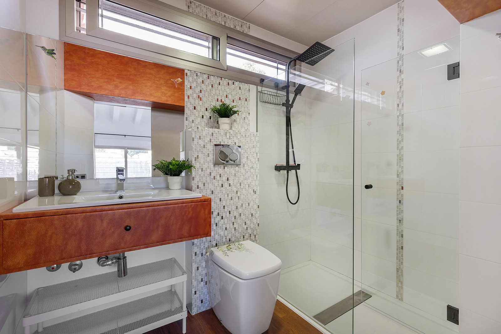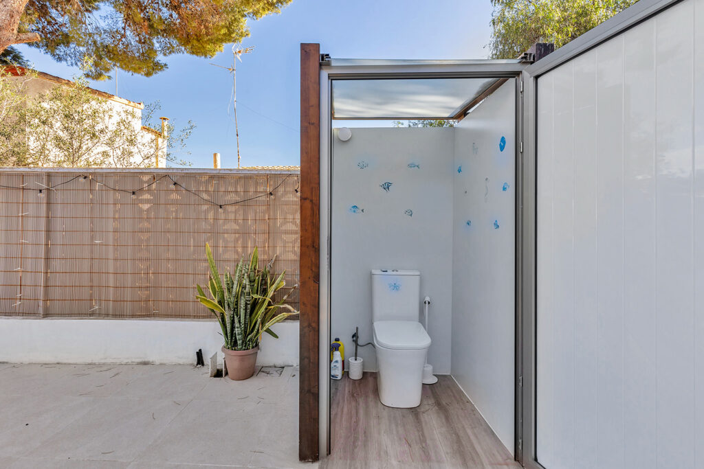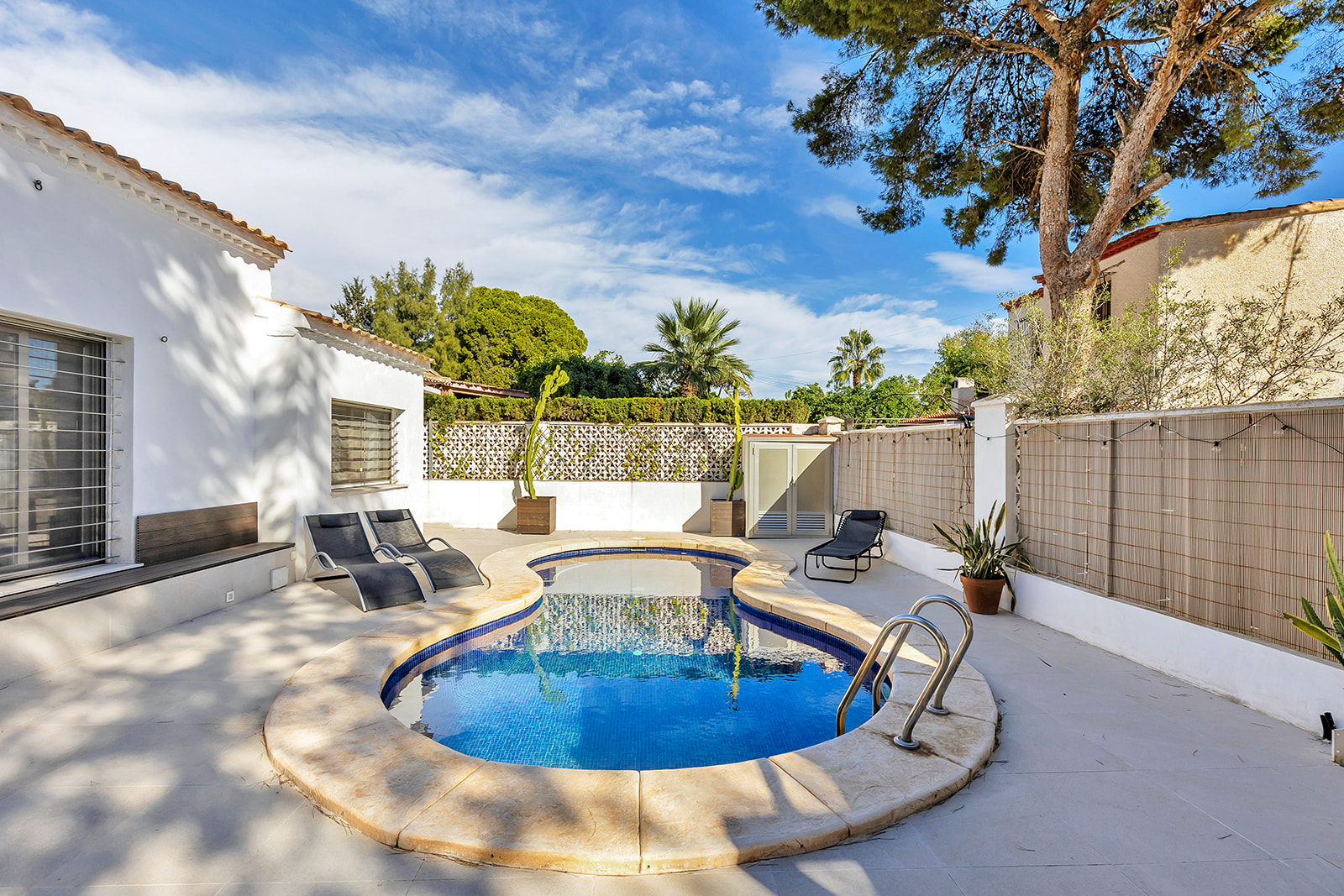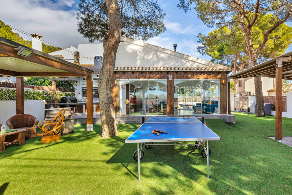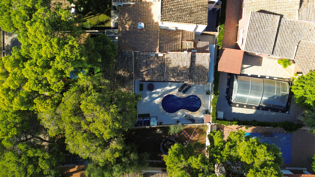 Tomten er på 450 m2 og hagen er vakker med privat basseng, utedusj, toalett, utekjøkken og flere pergolaer og sitteplasser.