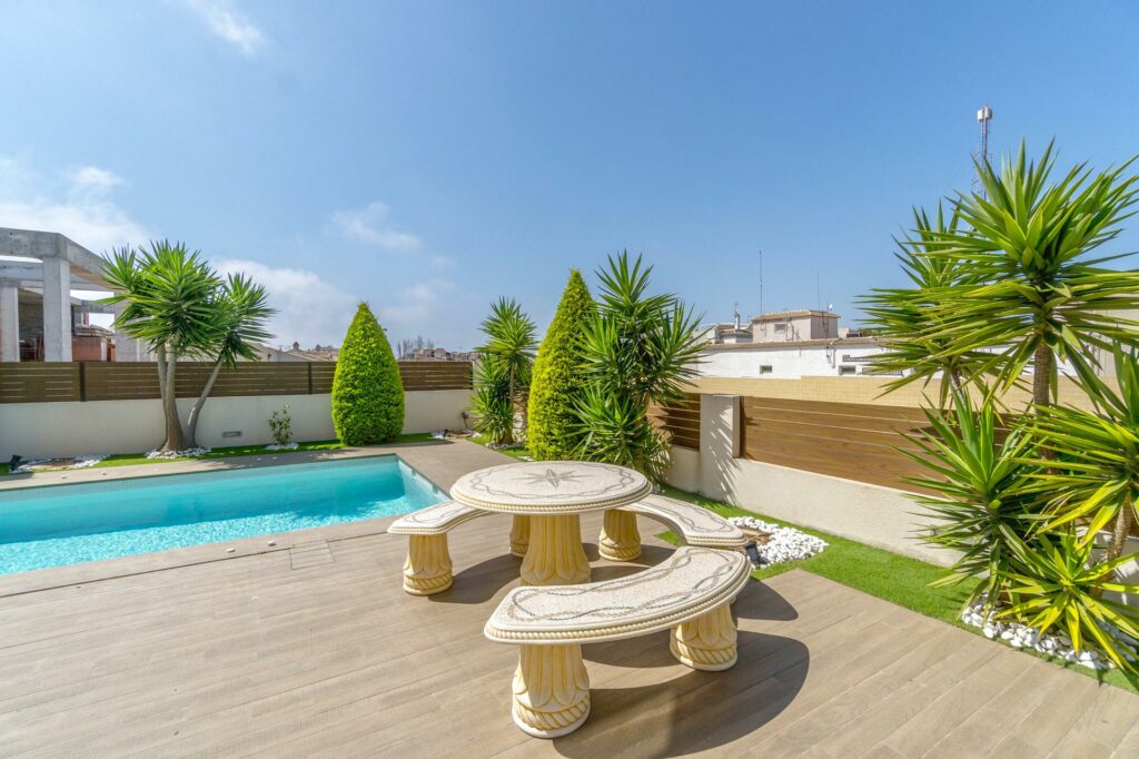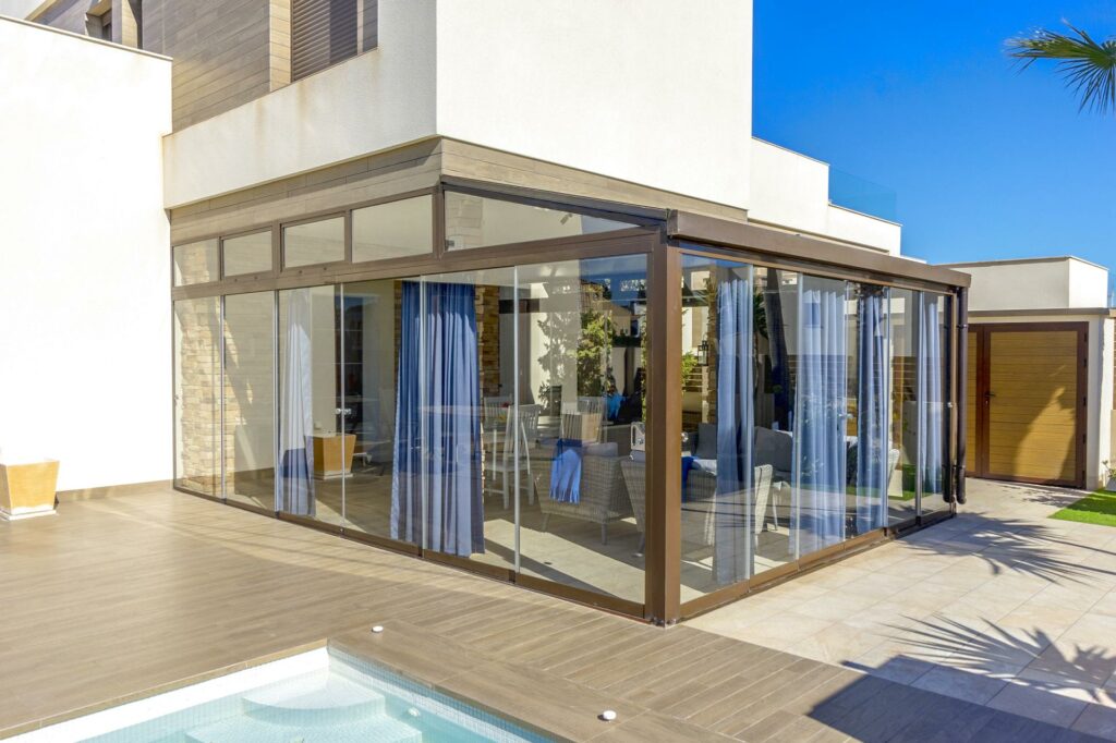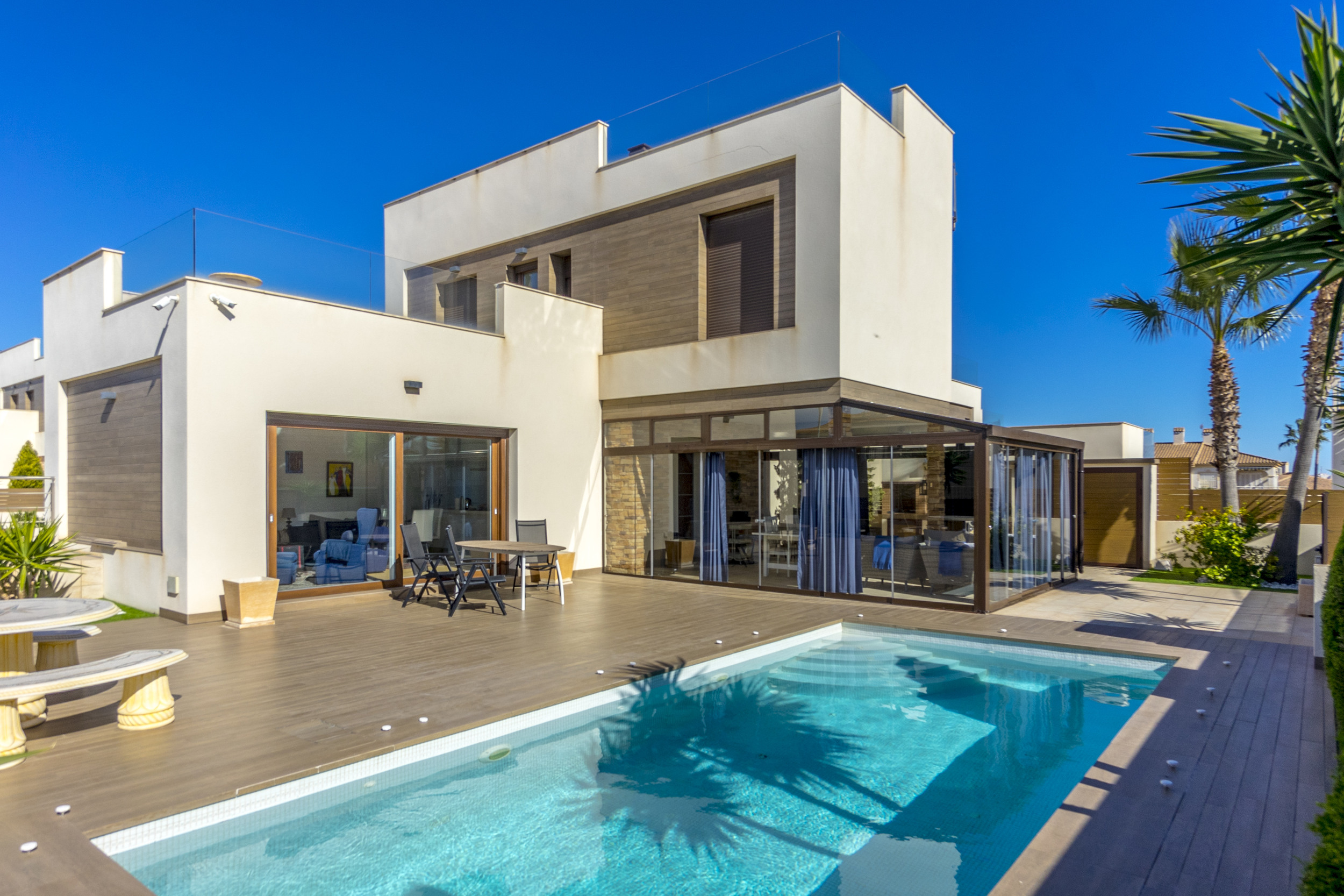 Denne moderne villaen ligger i det populære området Torreblanca/Aguas Nuevas i Torrevieja.
