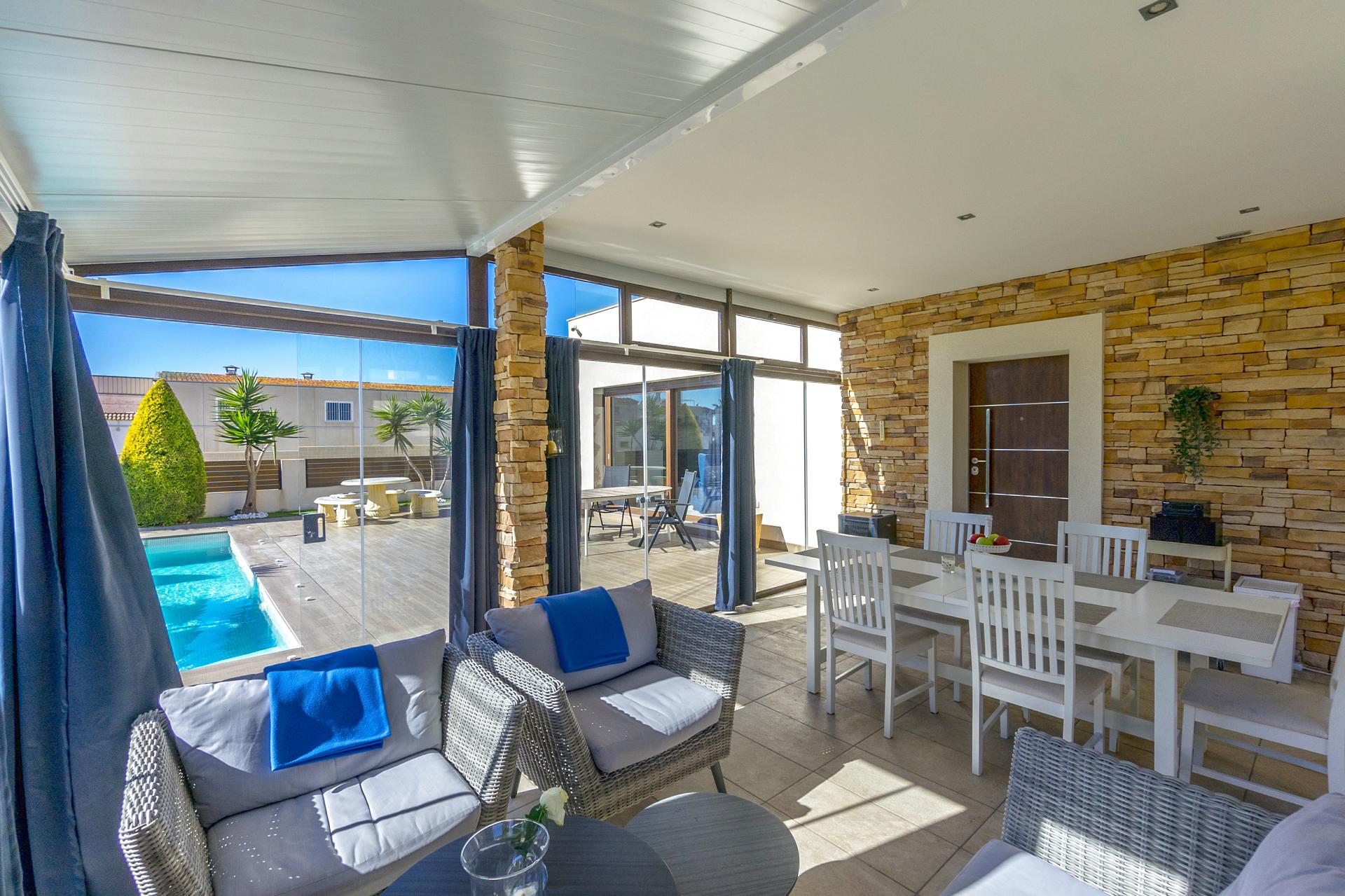 I andre etasje finner du ytterligere to soverom og ett bad, i tillegg til en terrasse. Herfra går det en trapp opp til en stor takterrasse med en helt upåklagelig utsikt utover Middelhavet og områdene rundt.