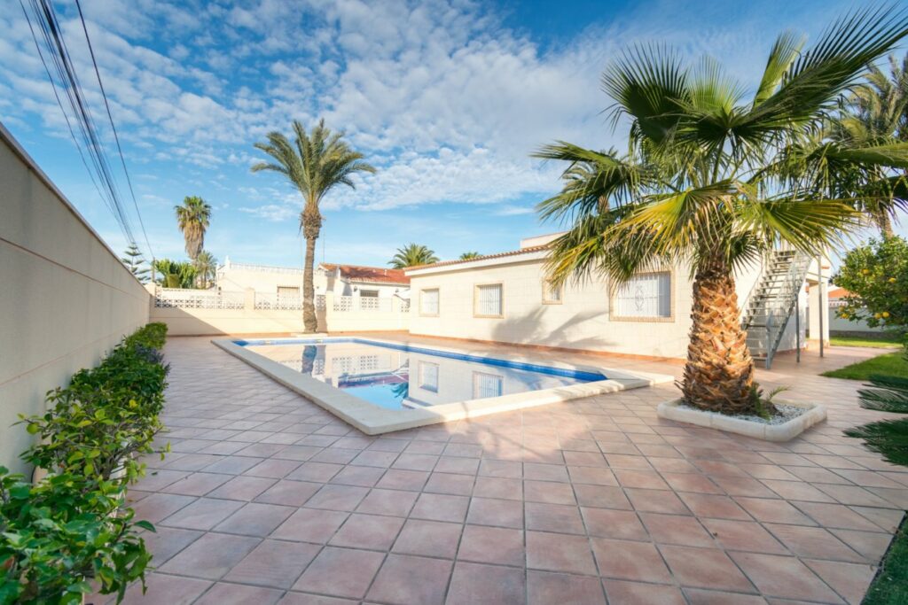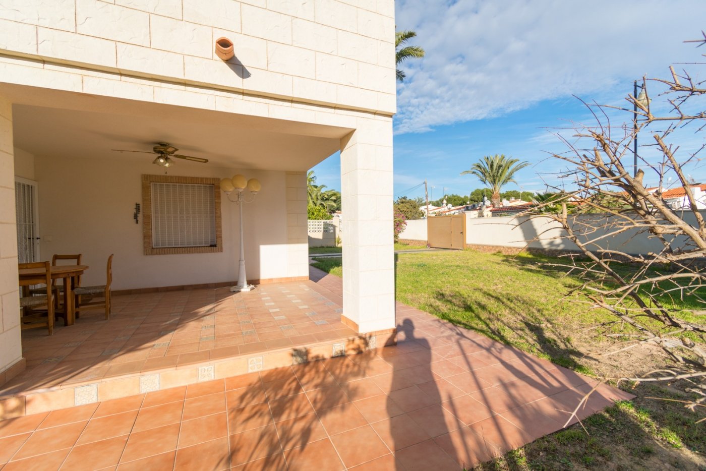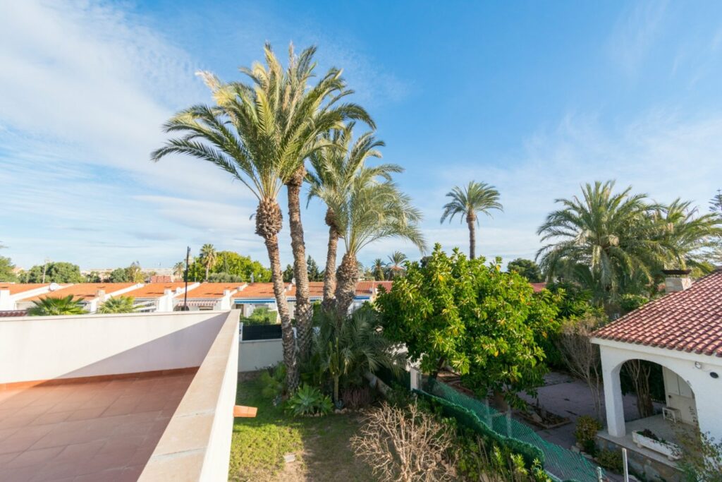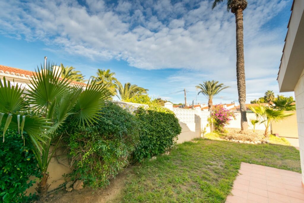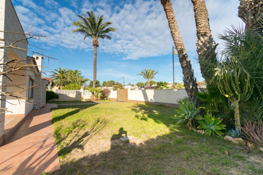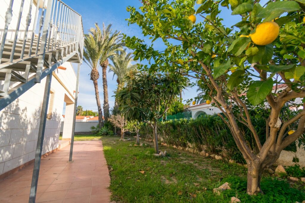 Villaen ligger på en tomt på 800 m2 med en stor hage med frukttrær og palmer.