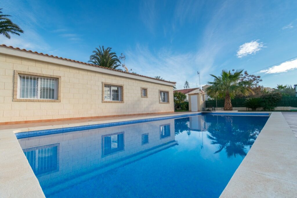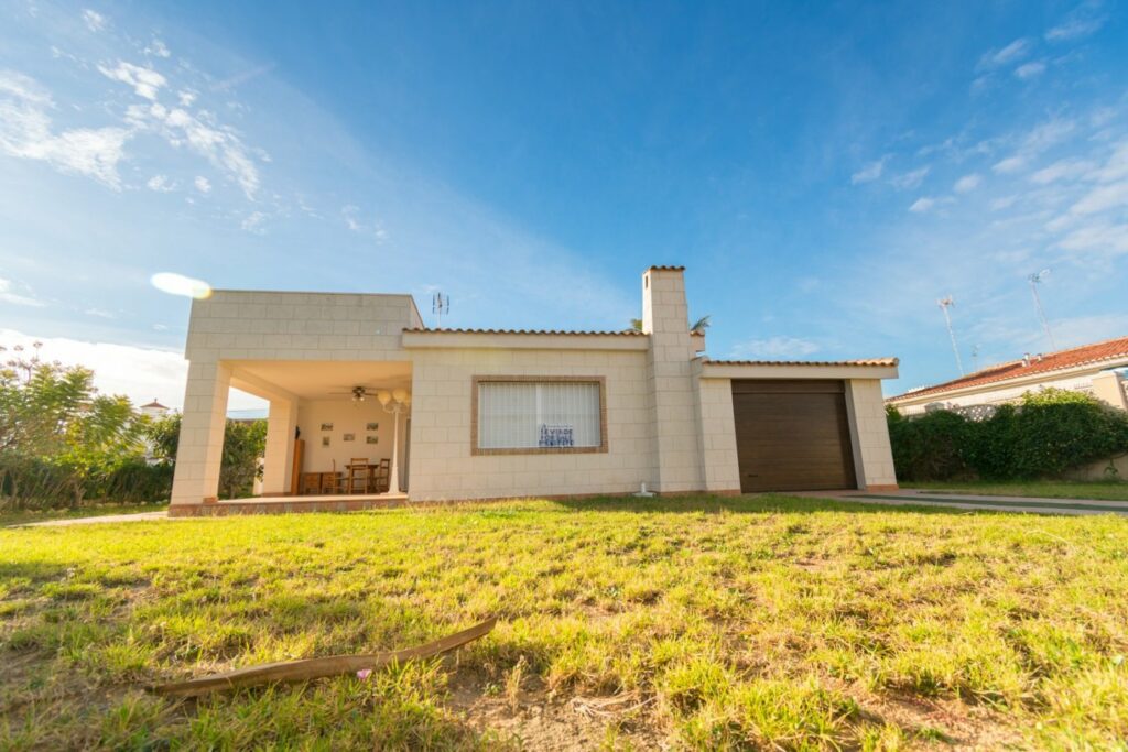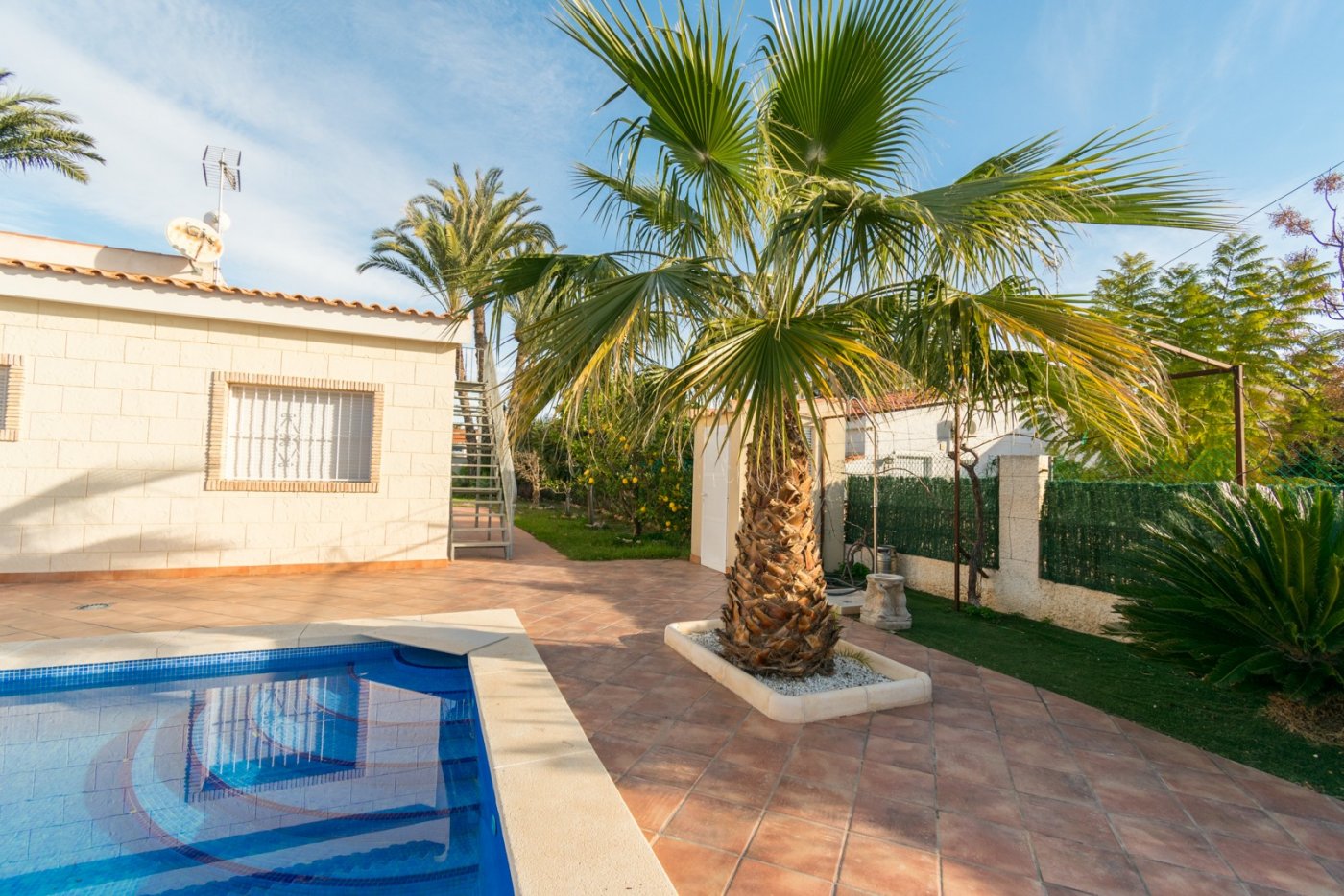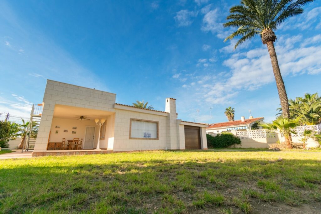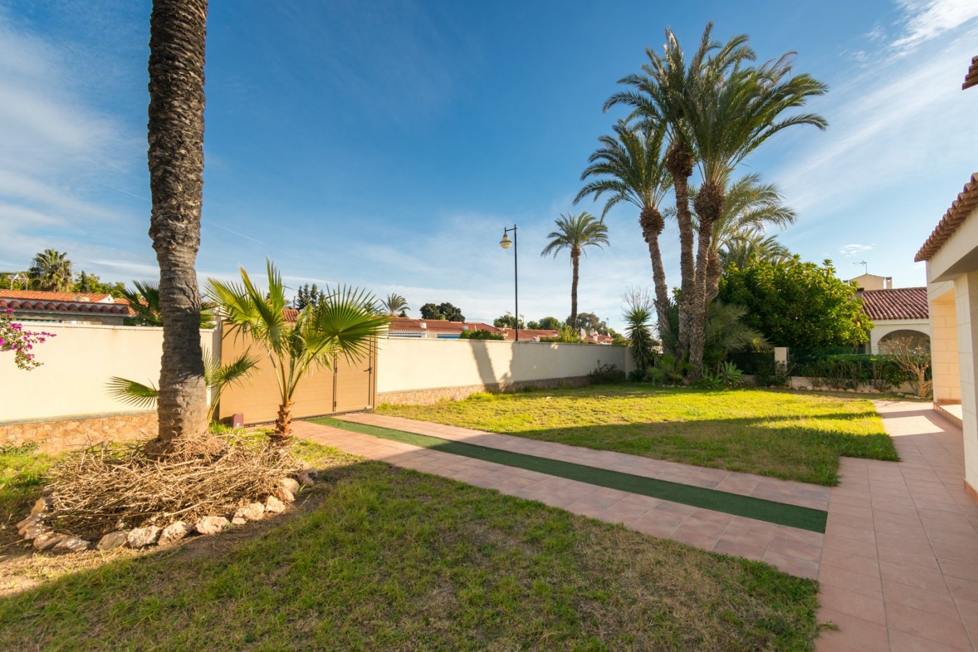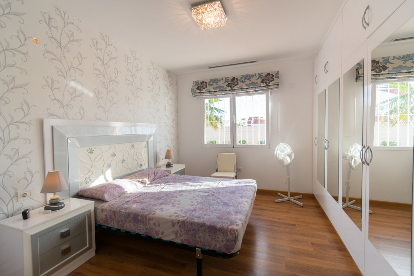 Villaen ligger på en tomt på 800 m2 med en stor hage med frukttrær og palmer.