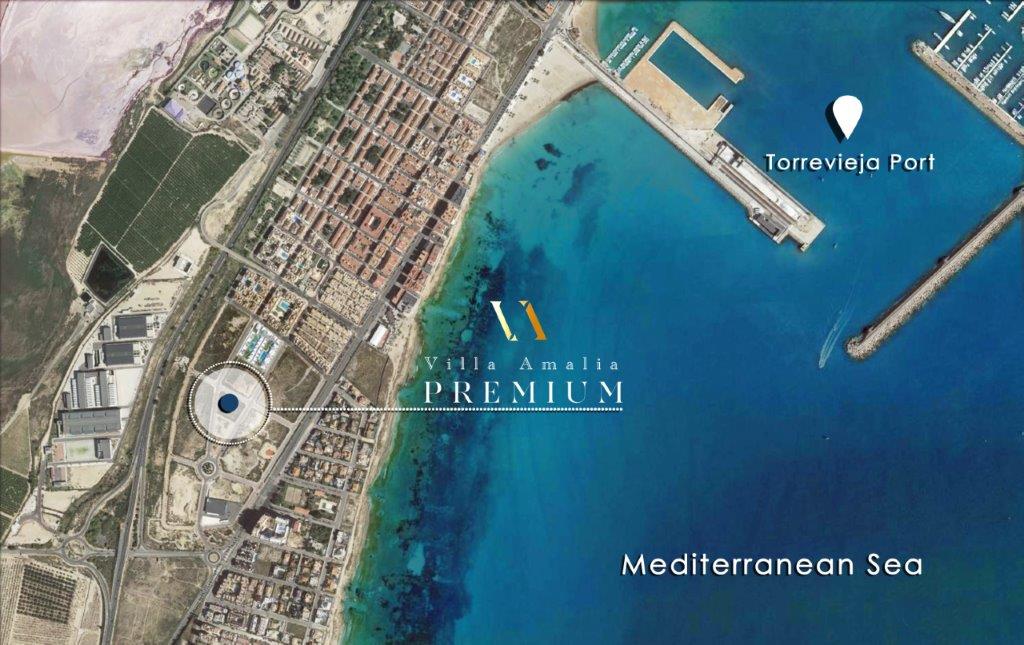 Prosjektet heter Residencial Villa Amalia Premium og det ligger rett ved La Veleta som er et eksklusivt område sør i Torrevieja. Et rolig område rett ved havet som lever hele året. Det er gangavstand til flere supermarkeder samt barer og restauranter. Det er en flott spasertur inn til Torrevieja sentrum langs havet, strendene og promenaden. Området bærer preg av en eksklusiv bebyggelse med høy standard. Boligen omgis av flotte turområder, en sjarmerende palmestrand og ikke minst grønne frodige parker.