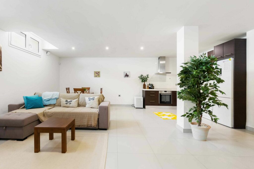 I kjelleren har du en egen leilighet med to soverom, et bad, et kjøkken og en stue.