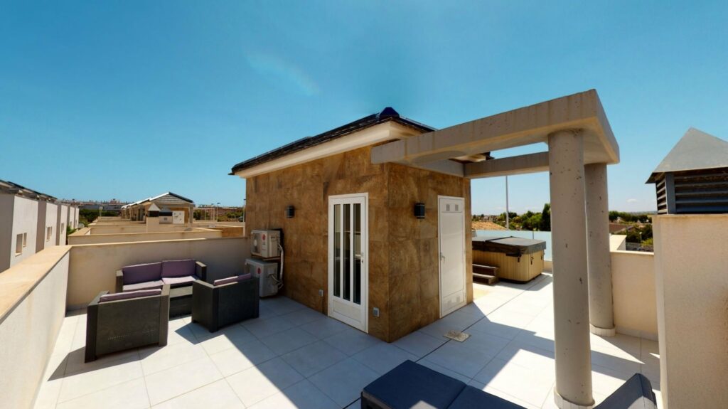 Det populære kjøpesenteret Habaneras og Carrefour er kun 700 meter unna og her finner du også kino og bowling. Torrevieja sentrum, Middelhavet og stranden Playa del Acequion ligger kun 1 km unna boligen.