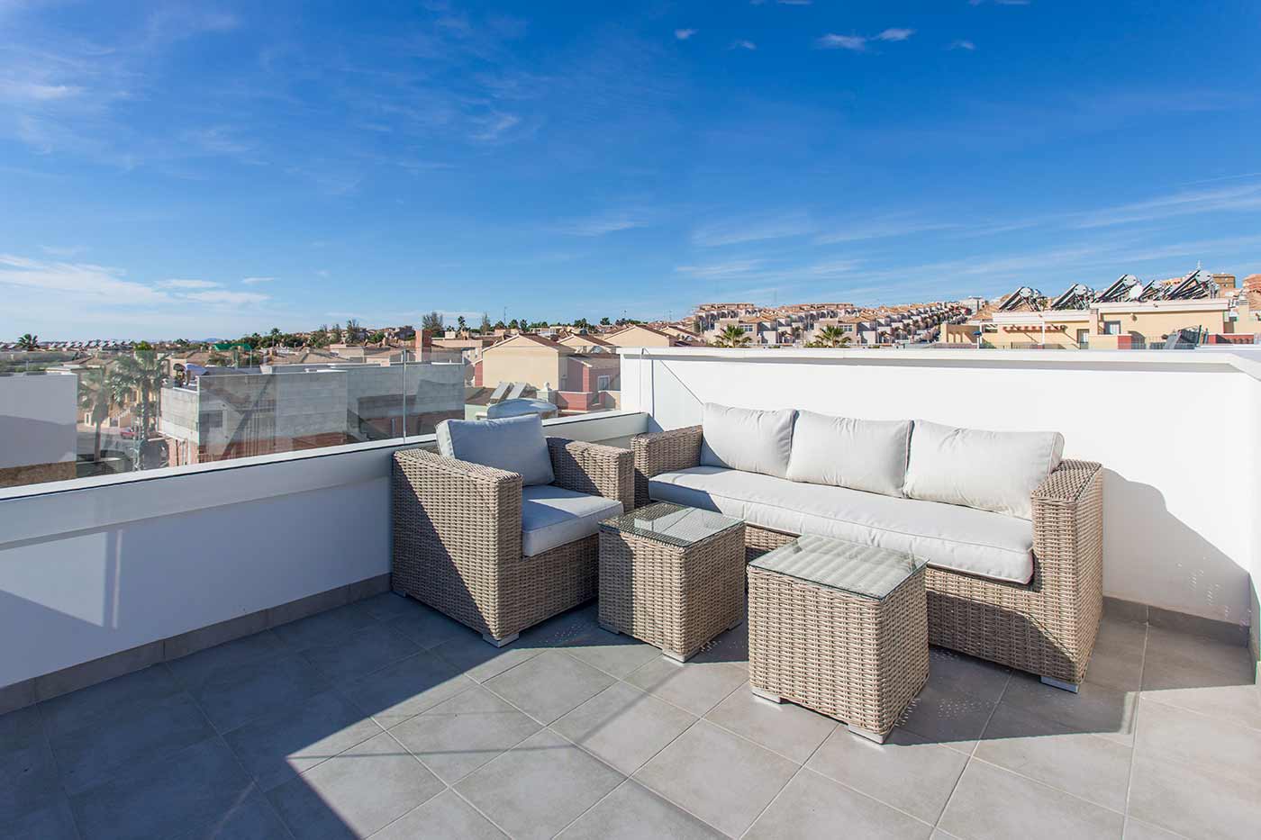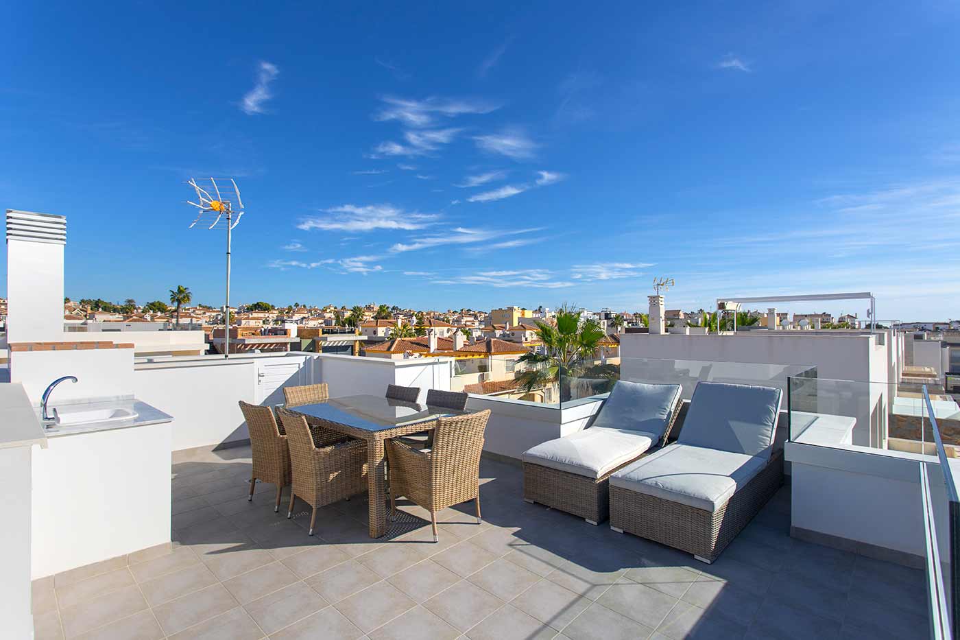 Dette er et etablert område som lever hele året. Det koselige kjøpesenteret Torremarina med Mercadona og mange koselige restauranter ligger kun firehundre meter unna. Det er en hyggelig spasertur langs promenaden på omkring 45 minutter til Torrevieja sentrum og ca 10 minutter til den flotte La Mata stranden. Dette er et hyggelig område både for ferieturister og fastboende.