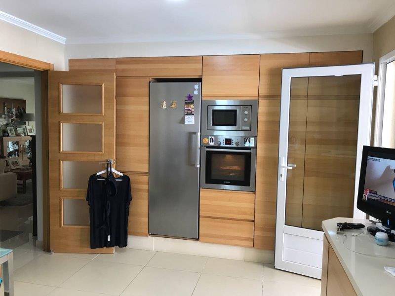 I kjøkkensonen er skapinnredningen stilren og helhetlig, og byr på gode oppbevaringsmuligheter. Det er også enkelt å ta med forfriskninger og måltider utendørs til terrassen og hagen rett utenfor.