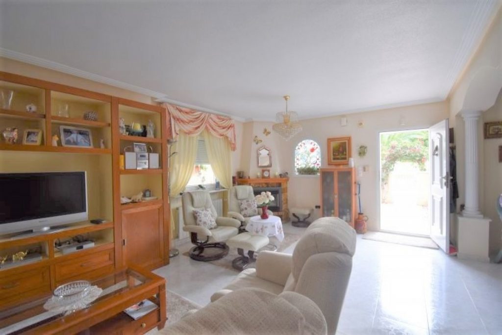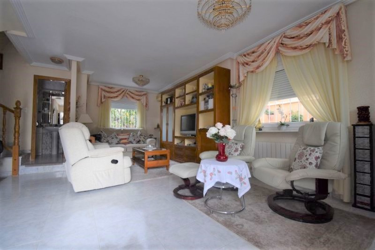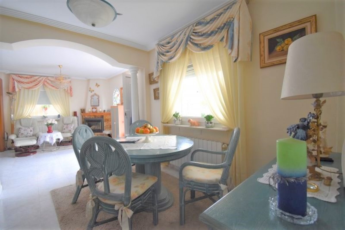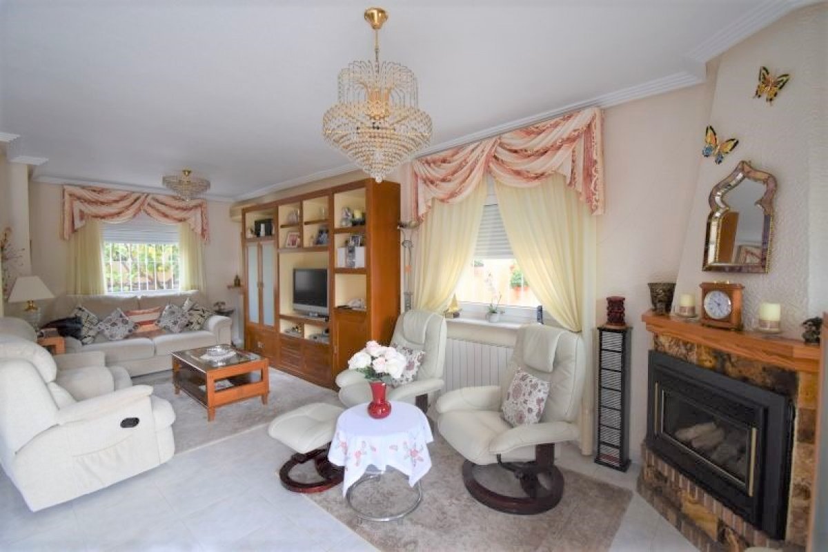 I første etasje finner du en romslig stue med peis og god plass til både sofagruppe og spisestue. Et hyggelig kjøkken med utgang til patio, bad med dusj og et soverom. I andre etasje er der 3 soverom (ett med utgang til terrasse), et bad med badekar og en takterrasse med utsikt over bassengområdet.