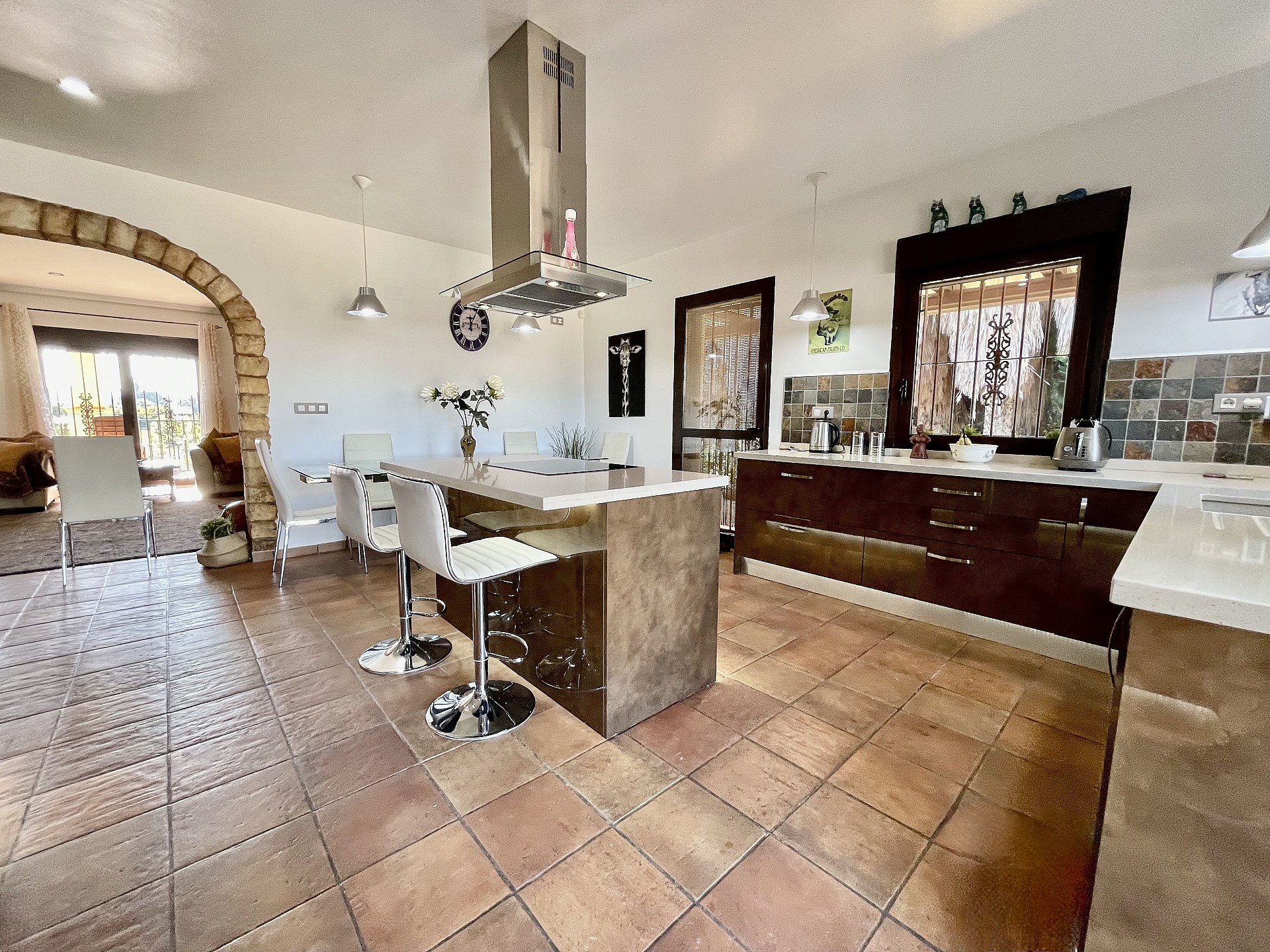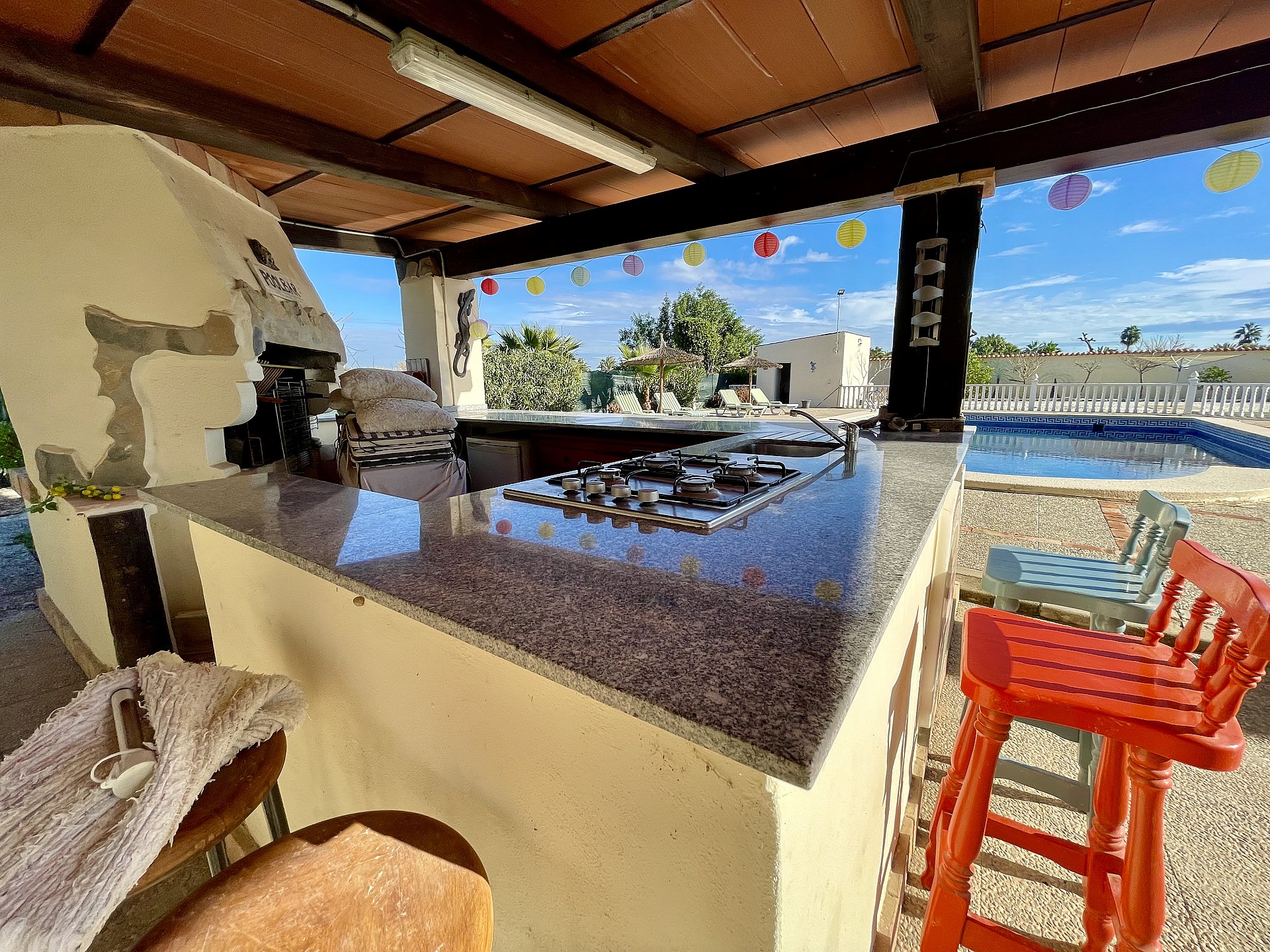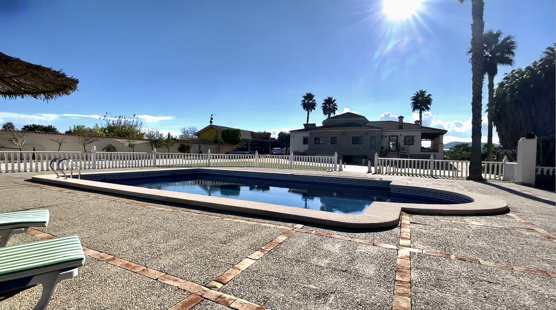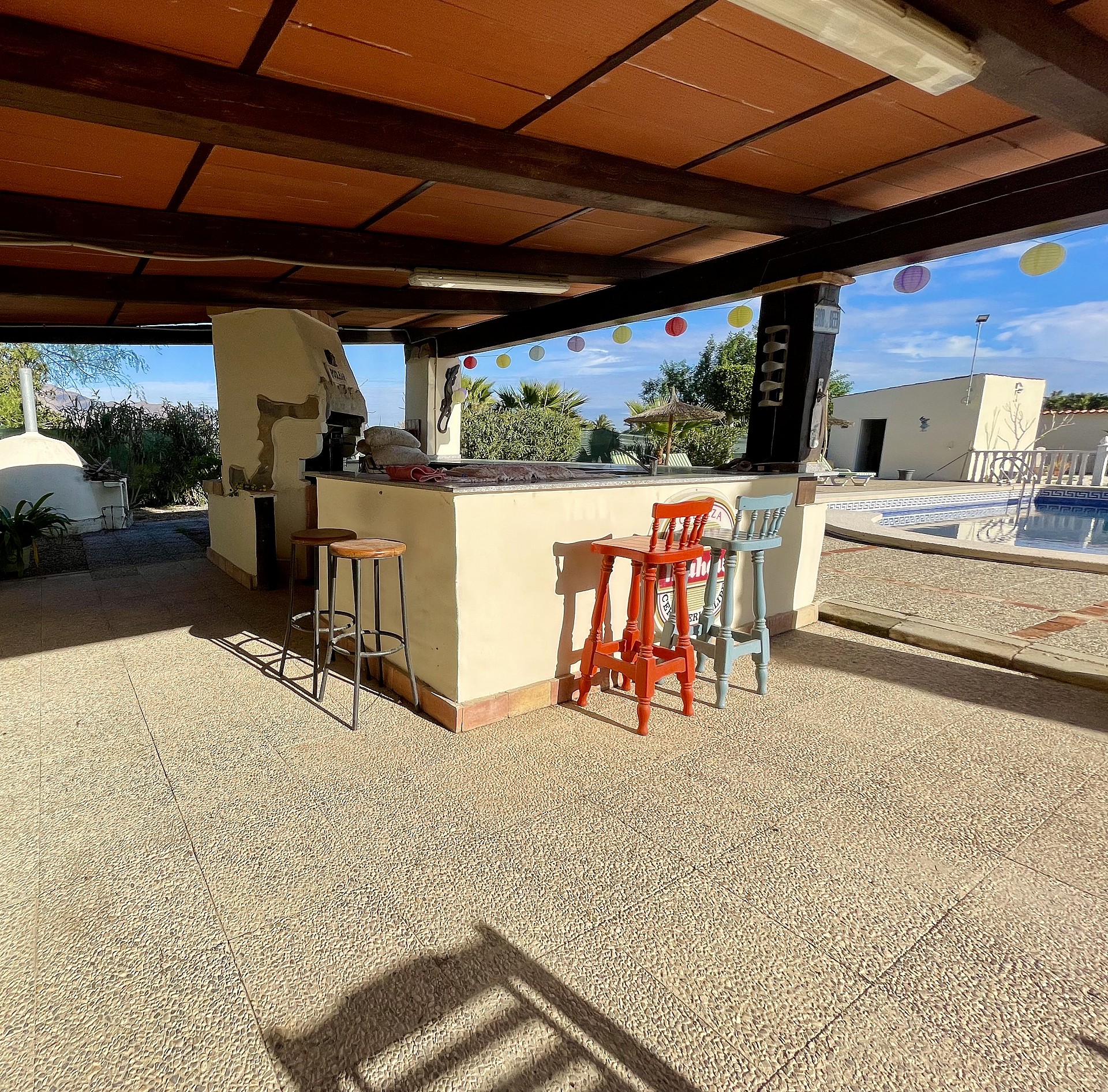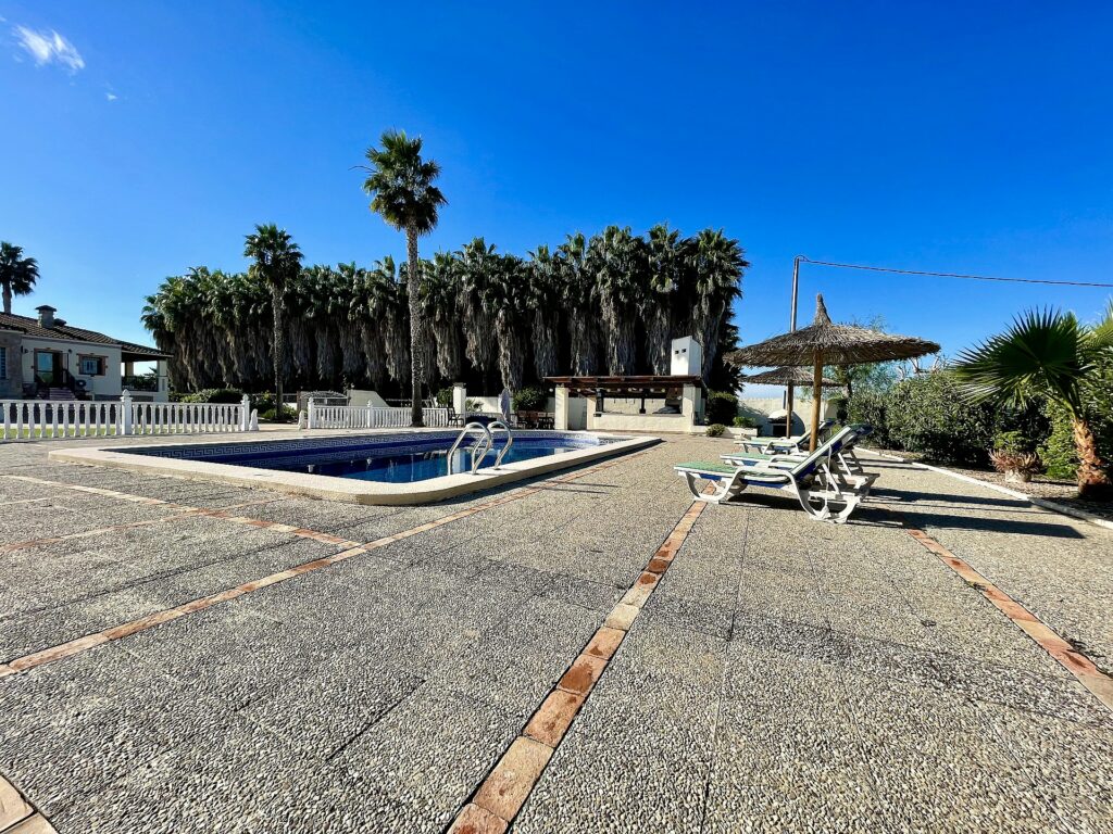 Velkommen til Finca al Parral og til denne helt nydelige boligen med alt du ønsker deg. Gjennom de store elektriske portene ønskes du velkommen av en stor tomt på 2500 kvm. Her har du utekjøkken, grill, pizzaovn, stort privat basseng, bassenghus med komplett bad som også er der bassengpumpen er.