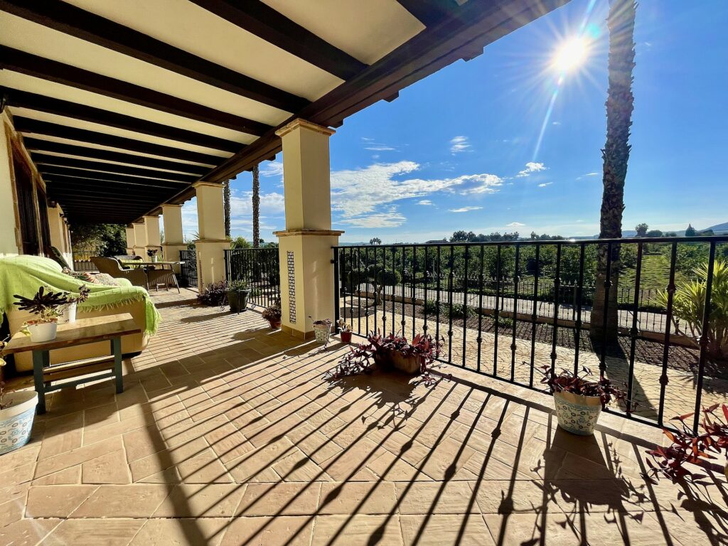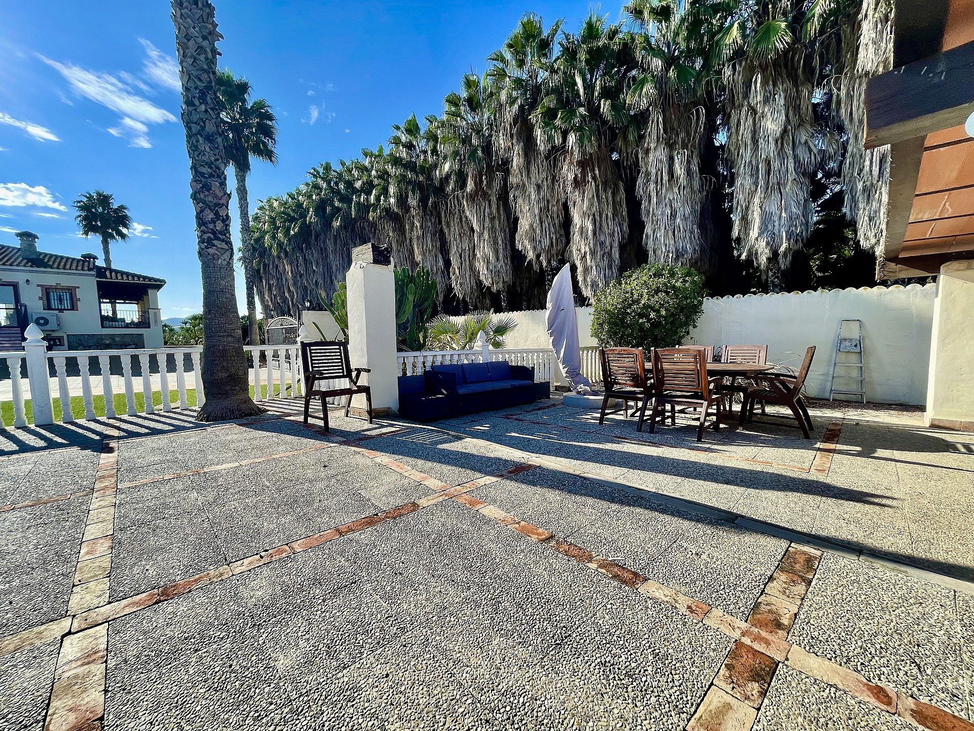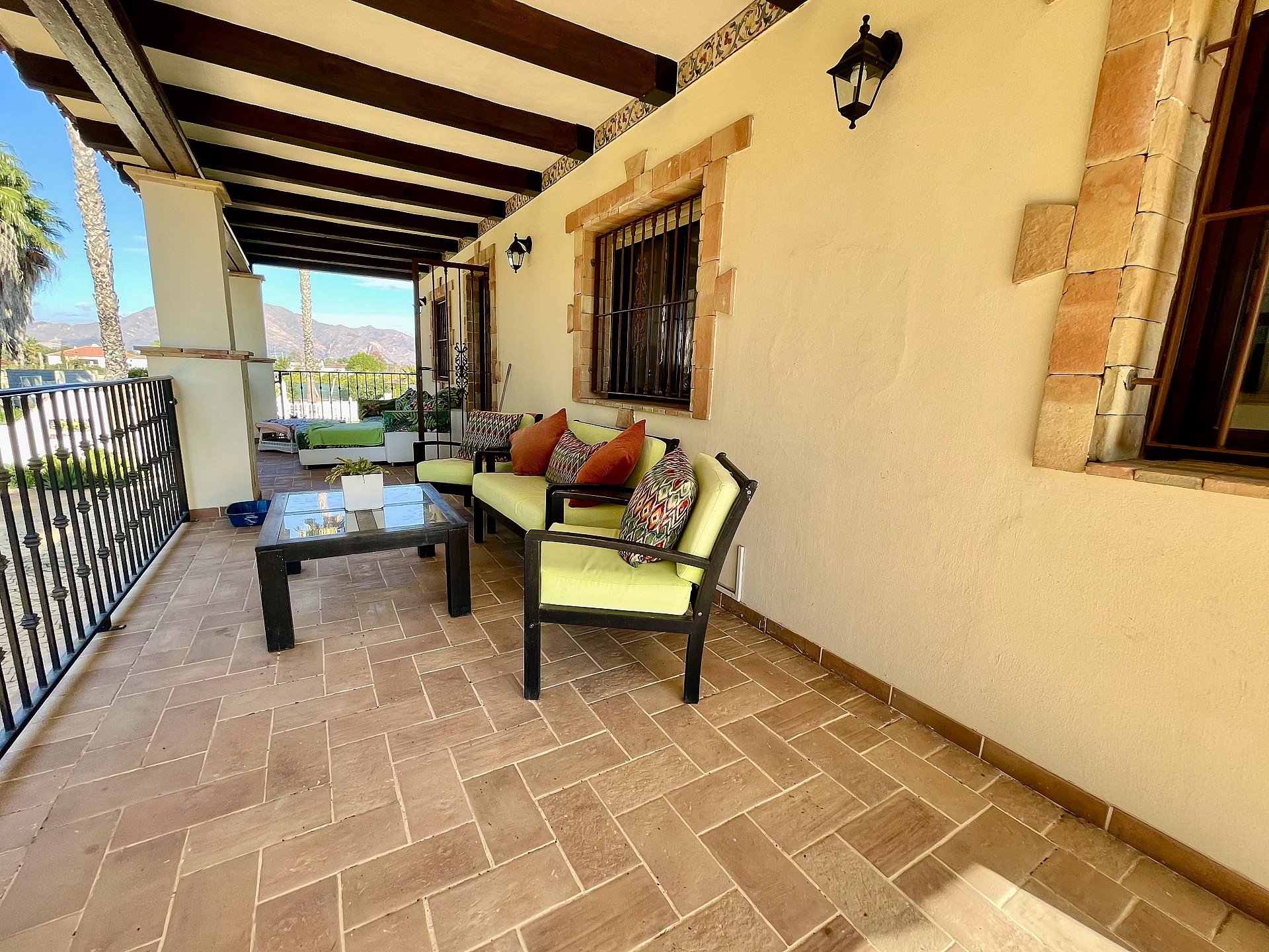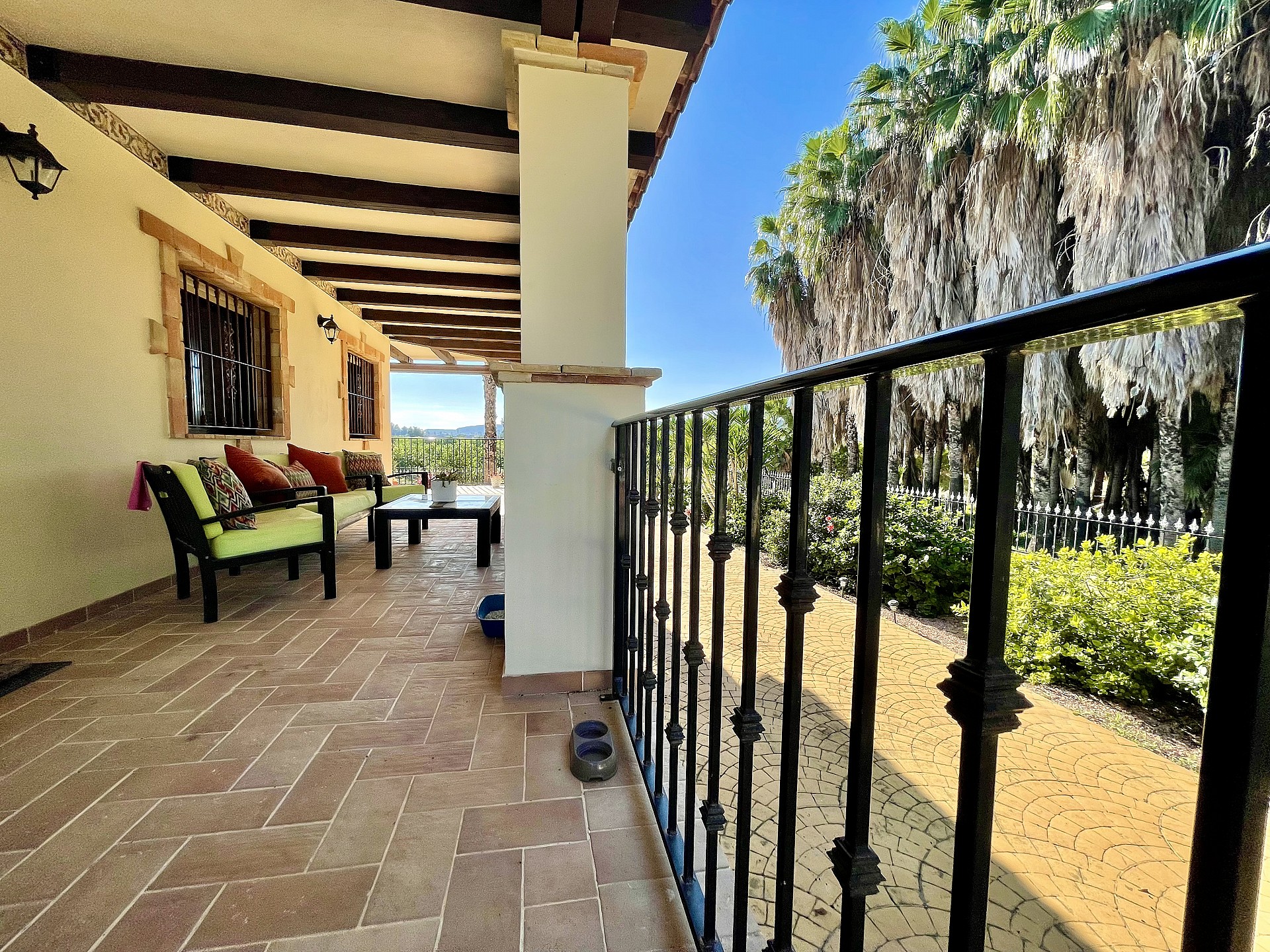 Den nydelige terrassen som omslutter nesten hele huset gir deg god plass til utemøbler. Her kan du nyte solnedgangen med utsikt utover appelsinlundene og fjellene.