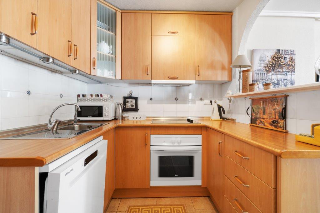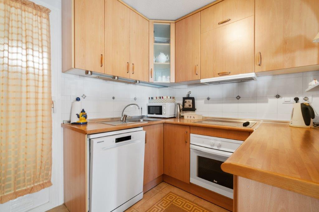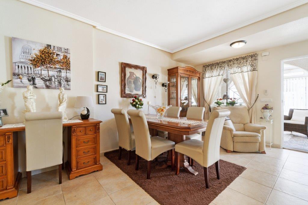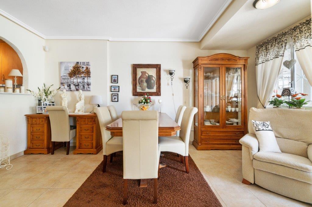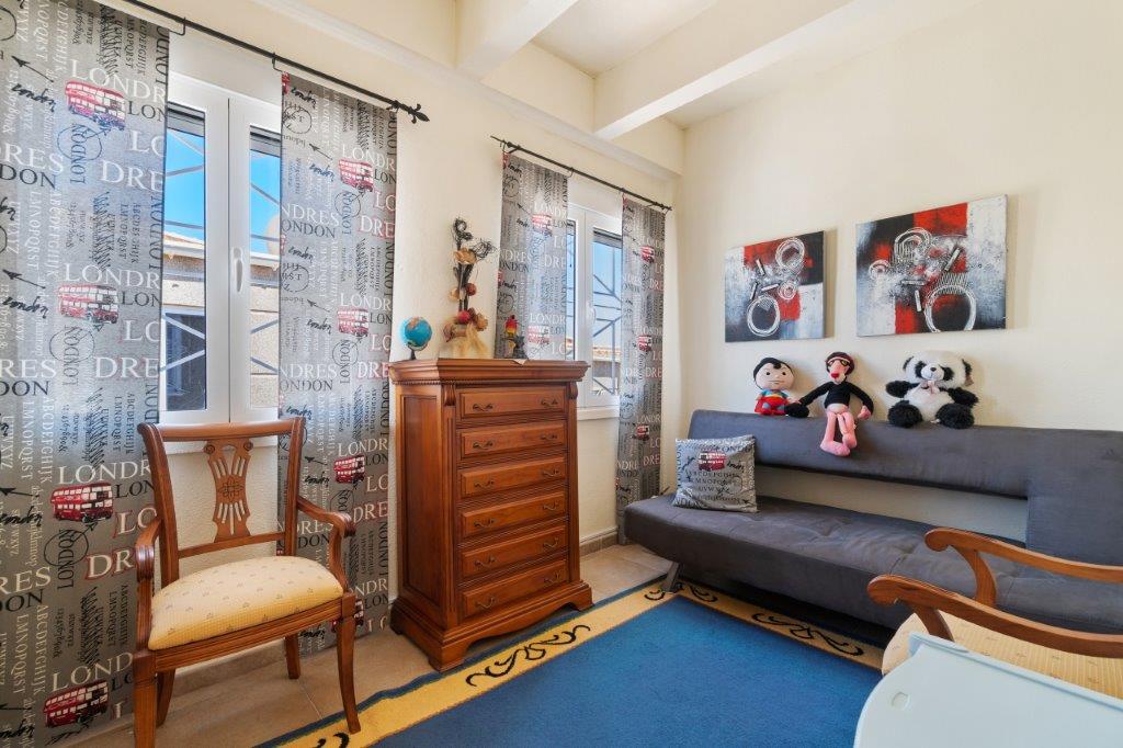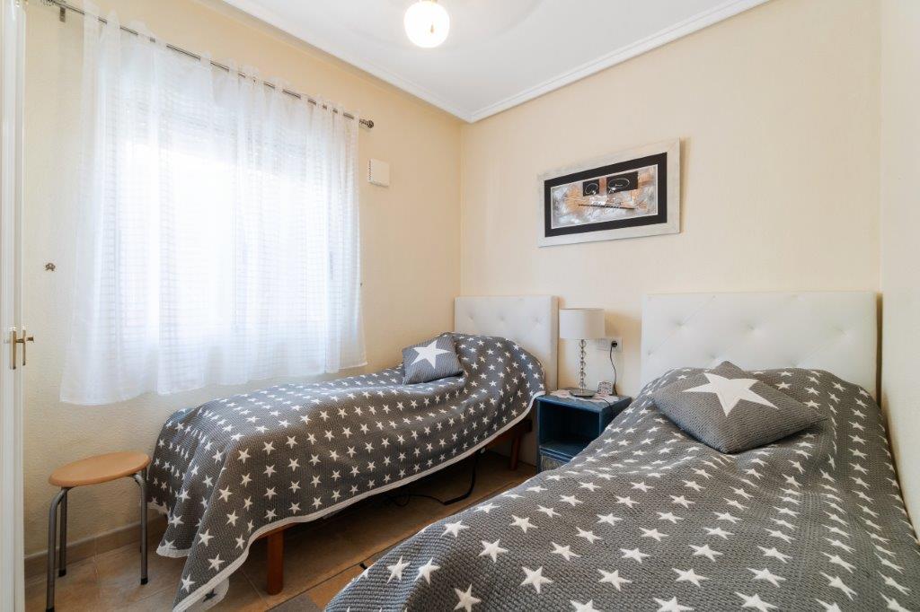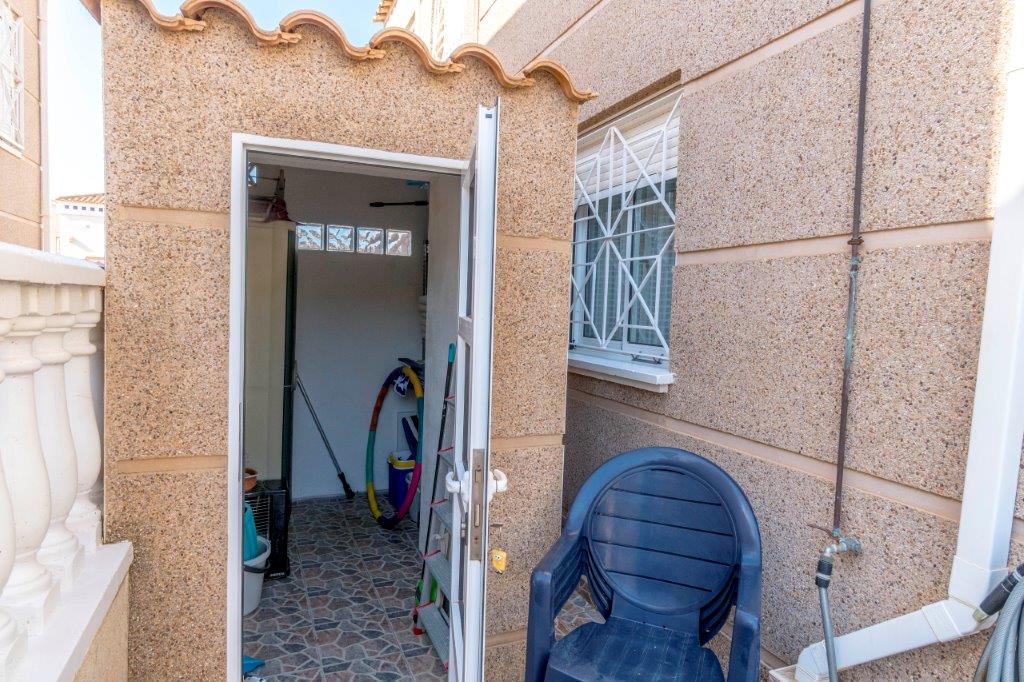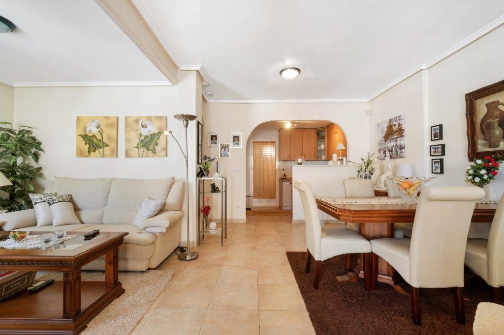 Denne fine firemannsboligen har 3 soverom, 2 bad, stor stue med åpen løsning mot kjøkkenet og en patio. Det er en fin innglasset terrasse utenfor stuen og på toppen er det en herlig takterrasse med nydelig havutsikt.