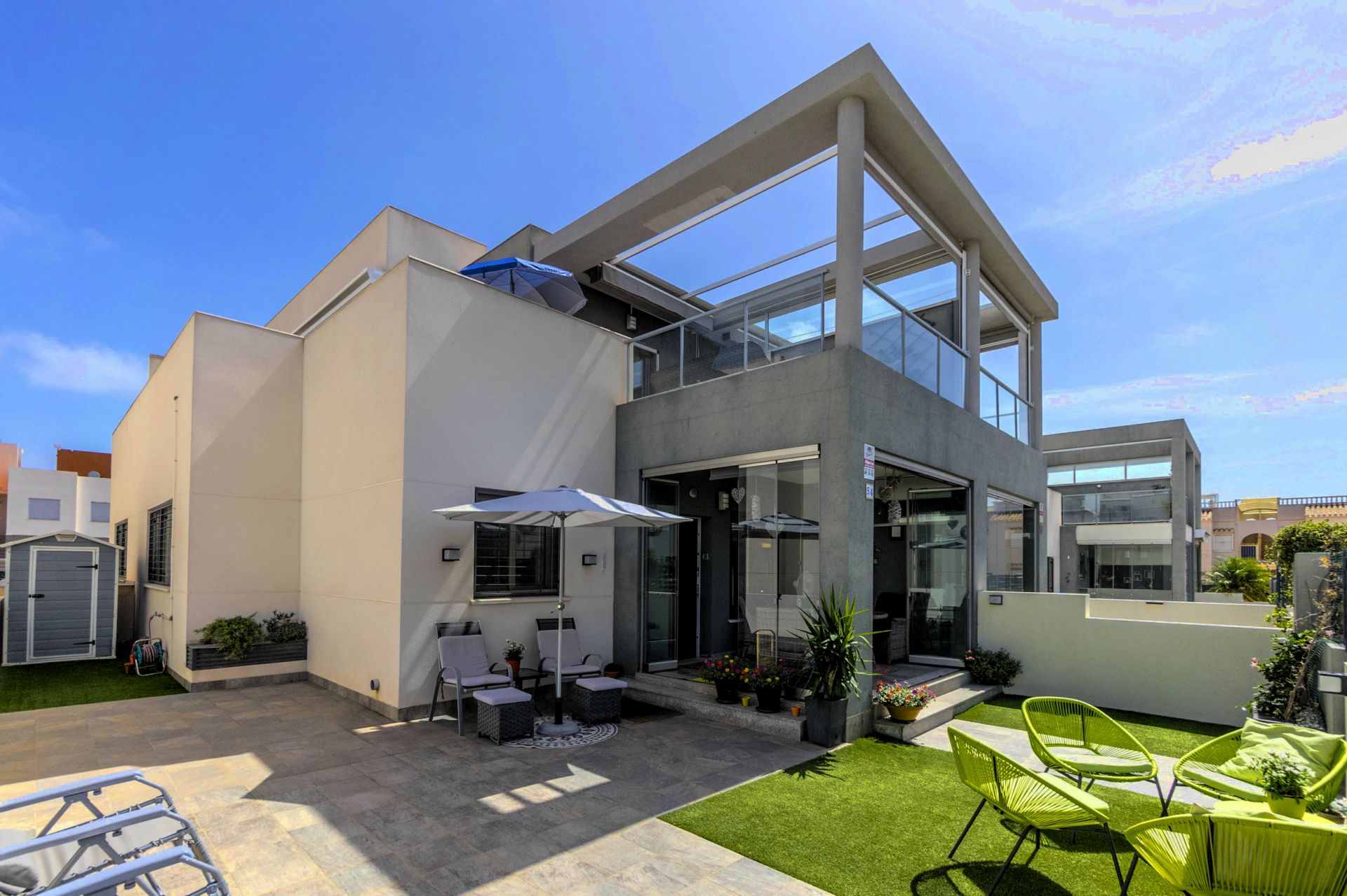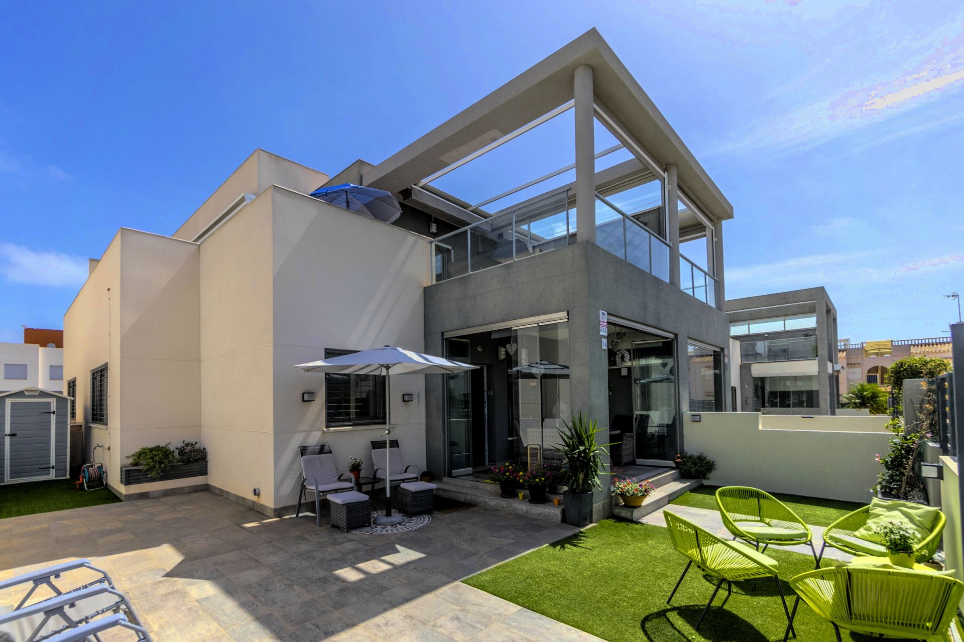 Dette er et etablert område med parker, turmuligheter, mange fastboende og hyggelig miljø. Kun fem minutters kjøretur til La Mata stranden og ca 10 minutter til strandpromenaden i Torrevieja! Det er god bussforbindelse til La Mata og Torrevieja.