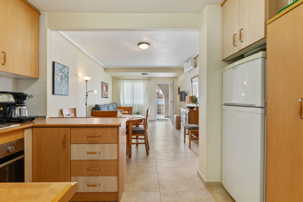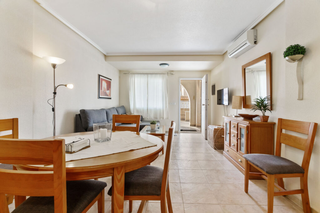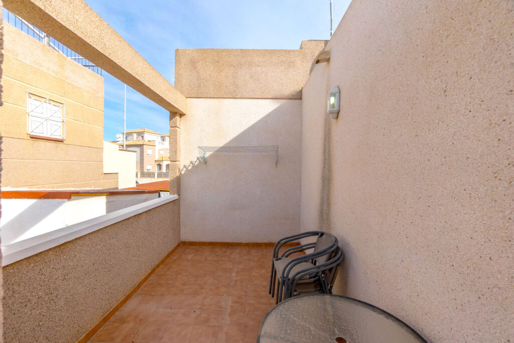 Det er god bussforbindelse til både sentrum av Torrevieja og til La Mata og det er en hyggelig spasertur langes promenaden på omkring 45 minutter til Torrevieja sentrum. Dette er et flott område både for ferieturister og fastboende.