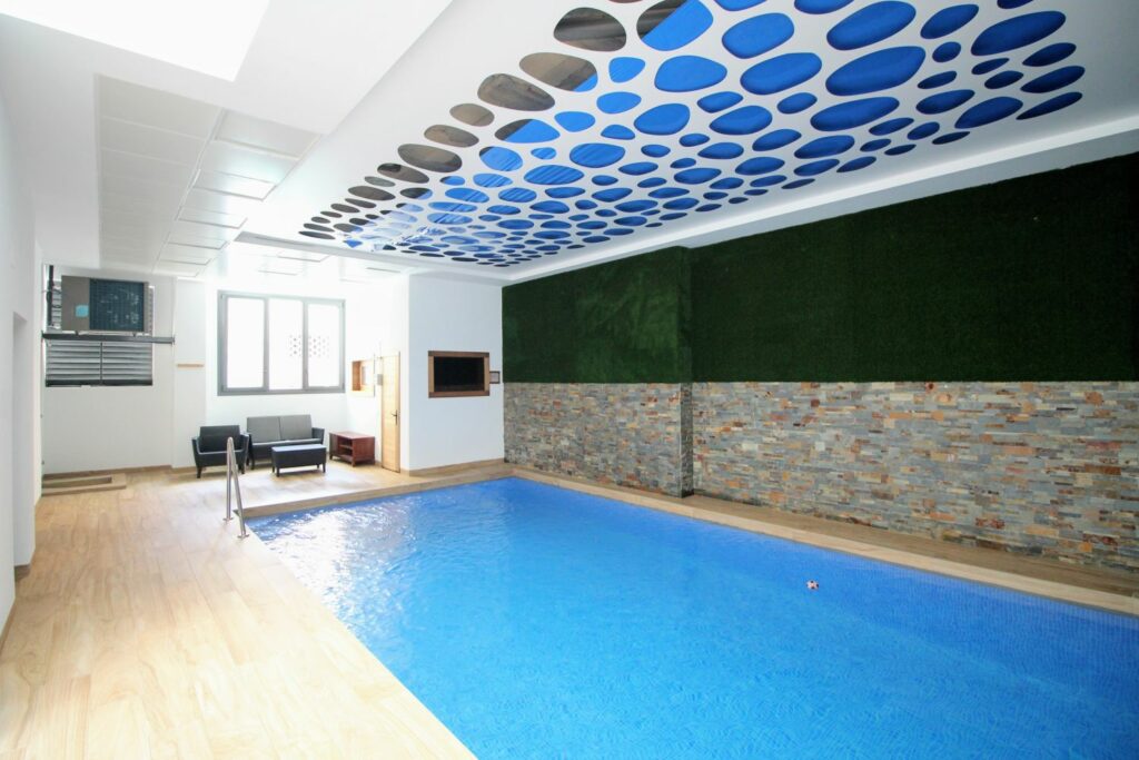 Det er felles svømmebasseng og badstue i urbanisasjonen.