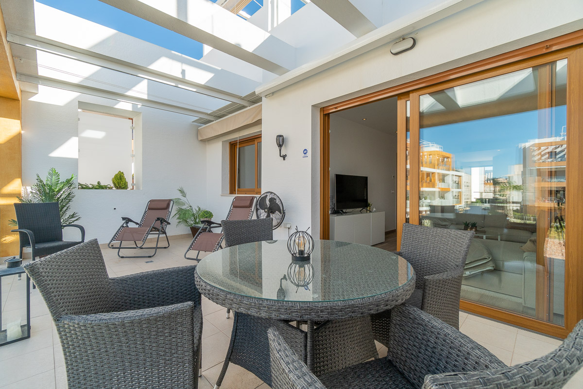 Vi har gleden av å presentere denne fantastiske penthouse-leiligheten i Villamartín, Orihuela Costa.