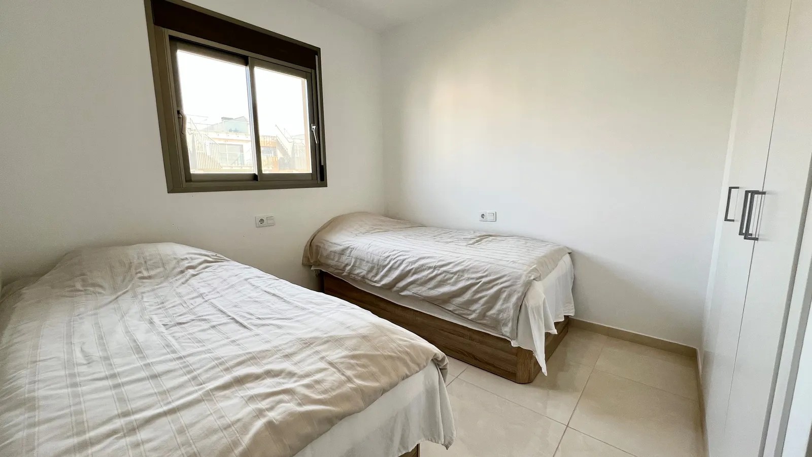 Leiligheten selges fullt møblert, med hvitevarer og aircondition.