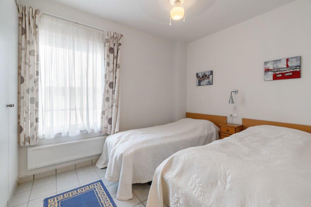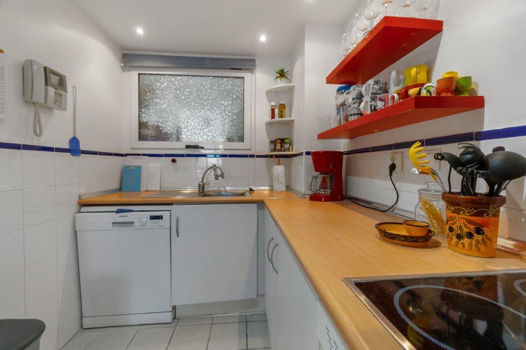 Denne fine leiligheten er på 67 m2 og inneholder 2 soverom med innebygde garderober, begge med en-suite bad, kjøkken med åpen løsning mot spisestuen/stuen, vaskerom og en stor terrasse med utsikt over fellesområdet med basseng.