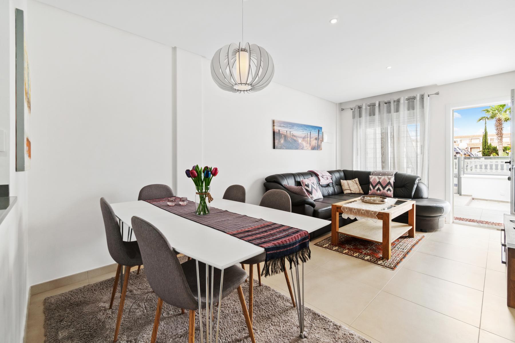 Boligen ligger også nære lørdagsmarkedet hvor du ukentlig vil kunne handle lokalt produsert frukt og grønt samt andre varer til utrolig hyggelige priser. Kjøpesenteret Zenia Boulevard, kystens største kjøpesenter med ca 150 butikker, finnes også i nærområdet samt kun en kort biltur til flere nydelige strender som for eksempel Punta Prima, Playa Flamenca, La Zenia og Cabo Roig.