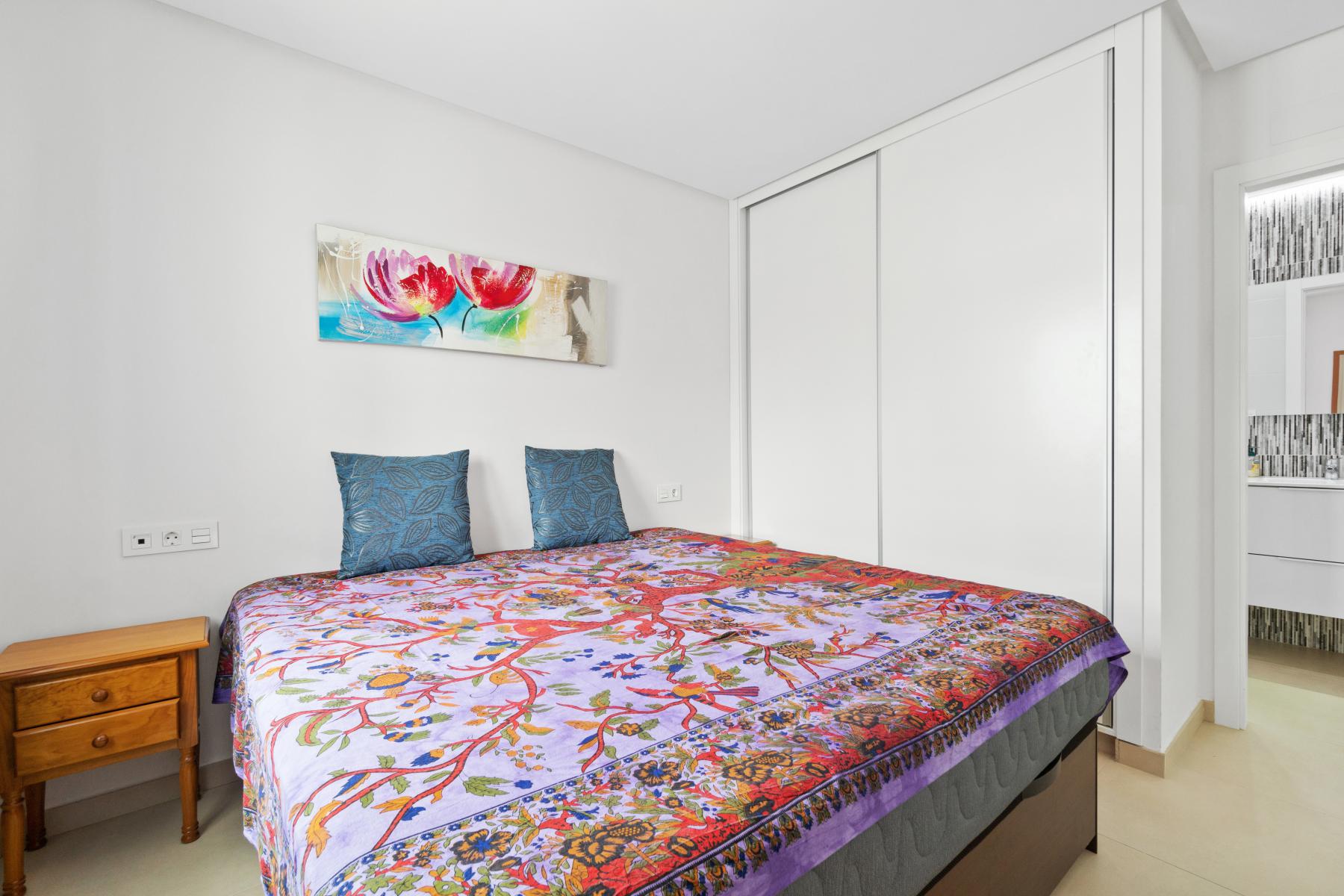 Det er kun 3 kilometer til sjøen og flotte badestrender. Til Torrevieja sentrum er det omtrent 6 km. Her finnes alt du måtte trenge av fasiliteter i gangavstand fra boligen. Det finnes også minigolf, go-cart, flotte turområder, gater med palmer og hyggelige torg, så her finnes det noe for enhver smak. Det er 6 golfbaner innenfor 15 minutter kjørsel.