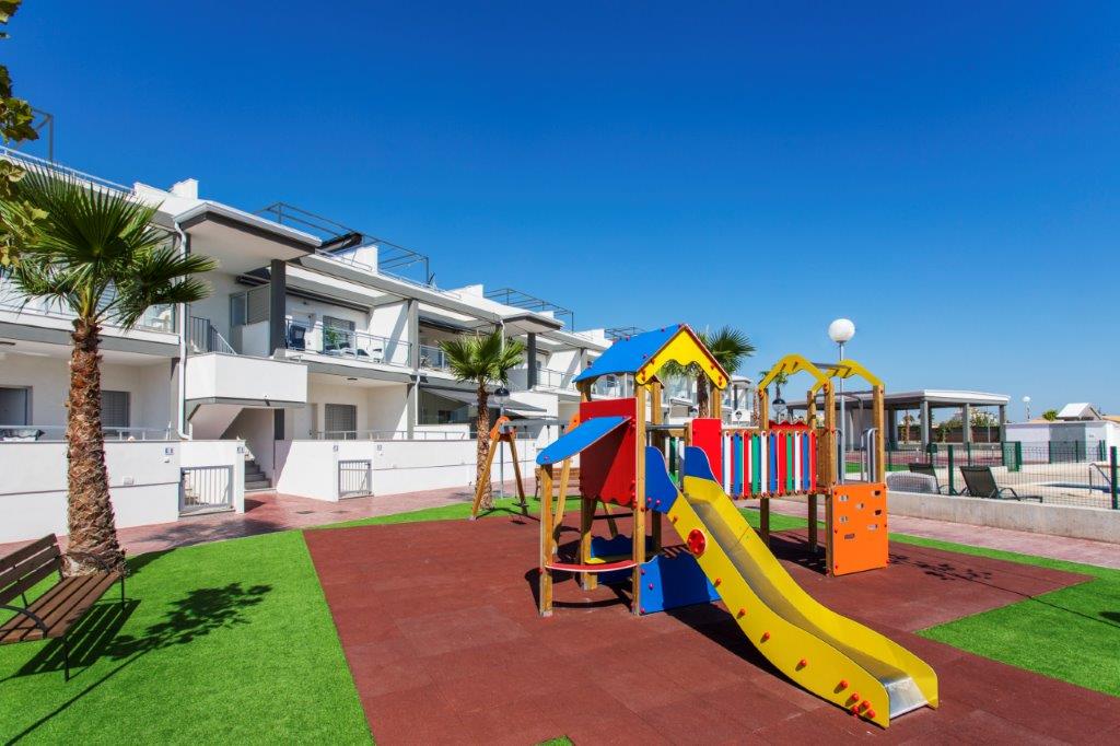 Det vil være et flott beplantet fellesområde med basseng med barnebasseng og jacuzzi. Det vil også bli en lekeplass og parkeringsplasser. Inkludert i prisen er det baderomsmøbler og dusjvegger, samt hvitevarer på kjøkkenet og møbelpakke . Boligene vil ha varmekabler på badene og blir levert med air condition på hovedsoverommet og i stuen.