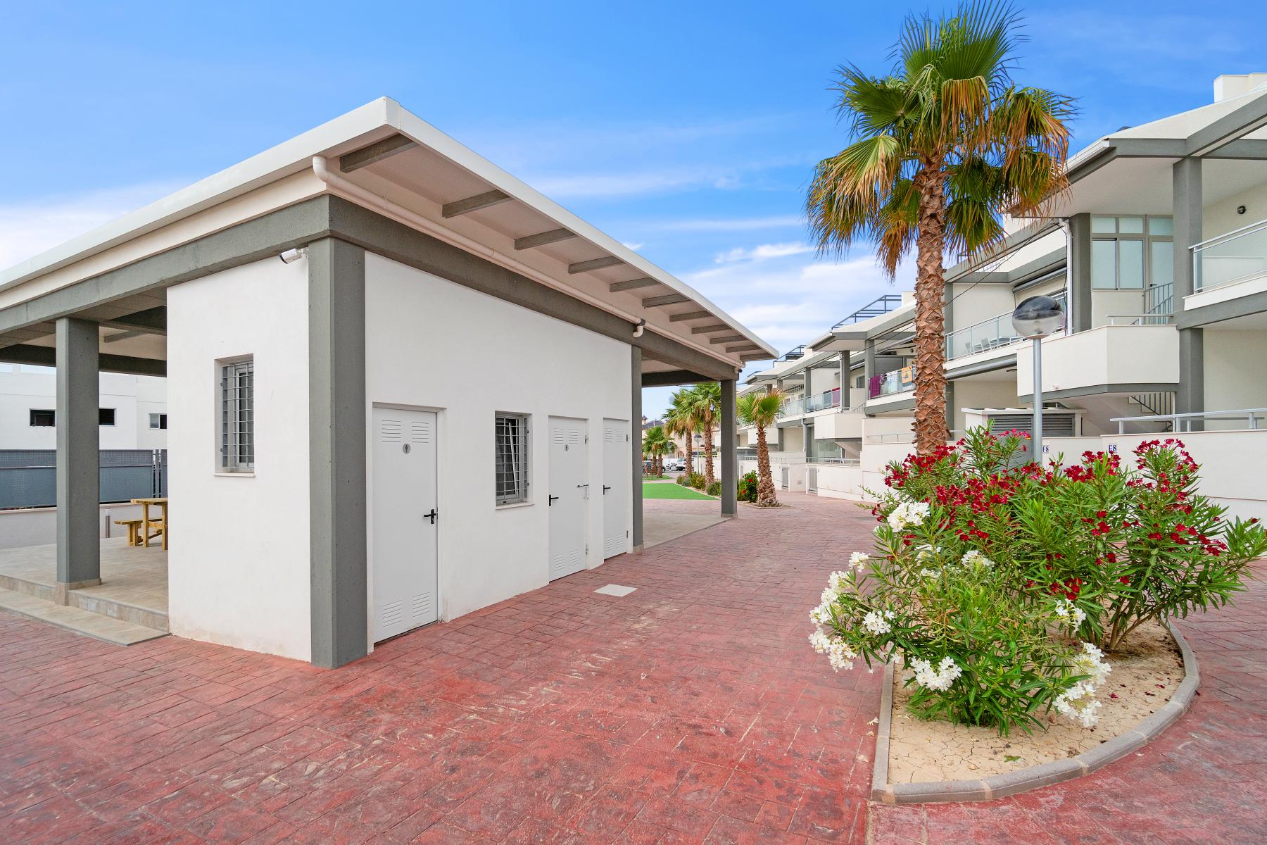 Boligen ligger også nære lørdagsmarkedet hvor du ukentlig vil kunne handle lokalt produsert frukt og grønt samt andre varer til utrolig hyggelige priser. Kjøpesenteret Zenia Boulevard, kystens største kjøpesenter med ca 150 butikker, finnes også i nærområdet samt kun en kort biltur til flere nydelige strender som for eksempel Punta Prima, Playa Flamenca, La Zenia og Cabo Roig.