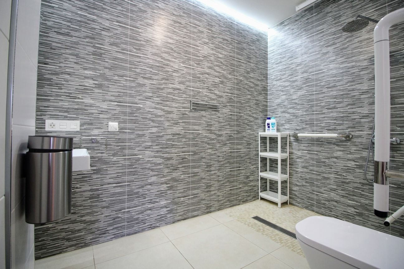 Boligen er spesielt handicap-/pleiepasient-tilpasset med kran i taket fra soverom til baderom. Ingen dørstokker. Store gode rom.