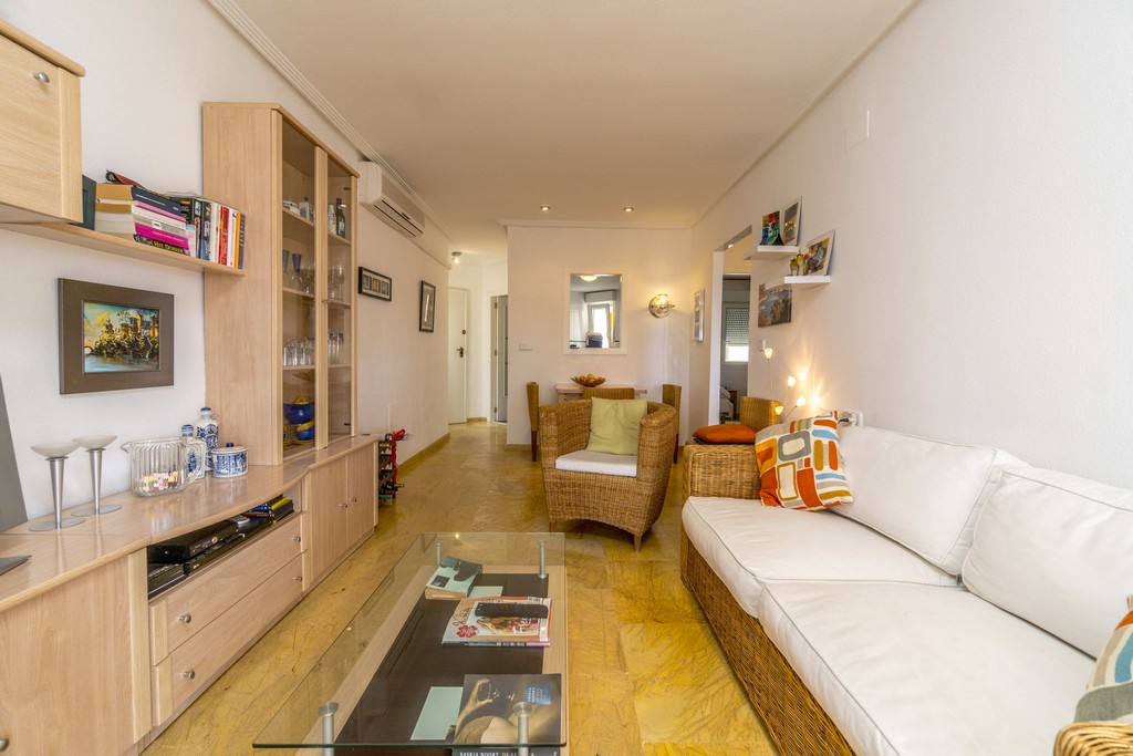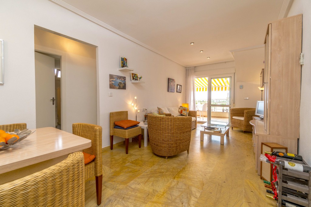Direkte tilgang til Cabo Roig-promenaden. Inkluderer parkeringsplass og bod i underjordisk garasje.