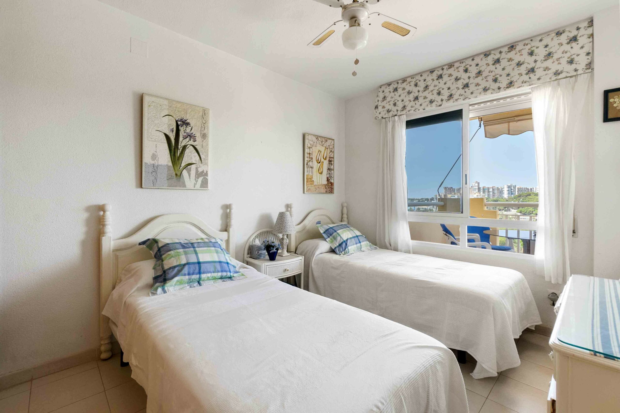 Fantastisk leilighet med panoramautsikt over havet. Denne sydvendte leiligheten på 91m2 har tre soverom, to komplette bad, et uavhengig utstyrt kjøkken, en stue-spisestue og en terrasse på ca. 15 m2.
