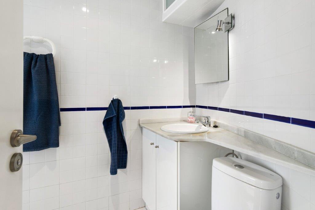 Fin leilighet på ca 64 m2 med 2 soverom og 2 en-suite bad, kjøkken med åpen løsning mot stuen, vaskerom og en fin terrasse på 12 m2. Terrassen har veldig fine solforhold og fin utsikt over fellesområdet med basseng.