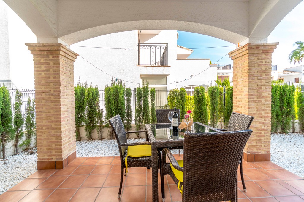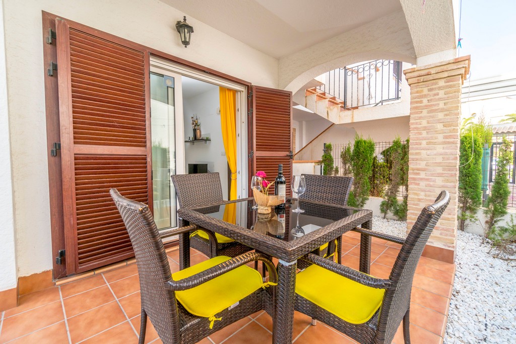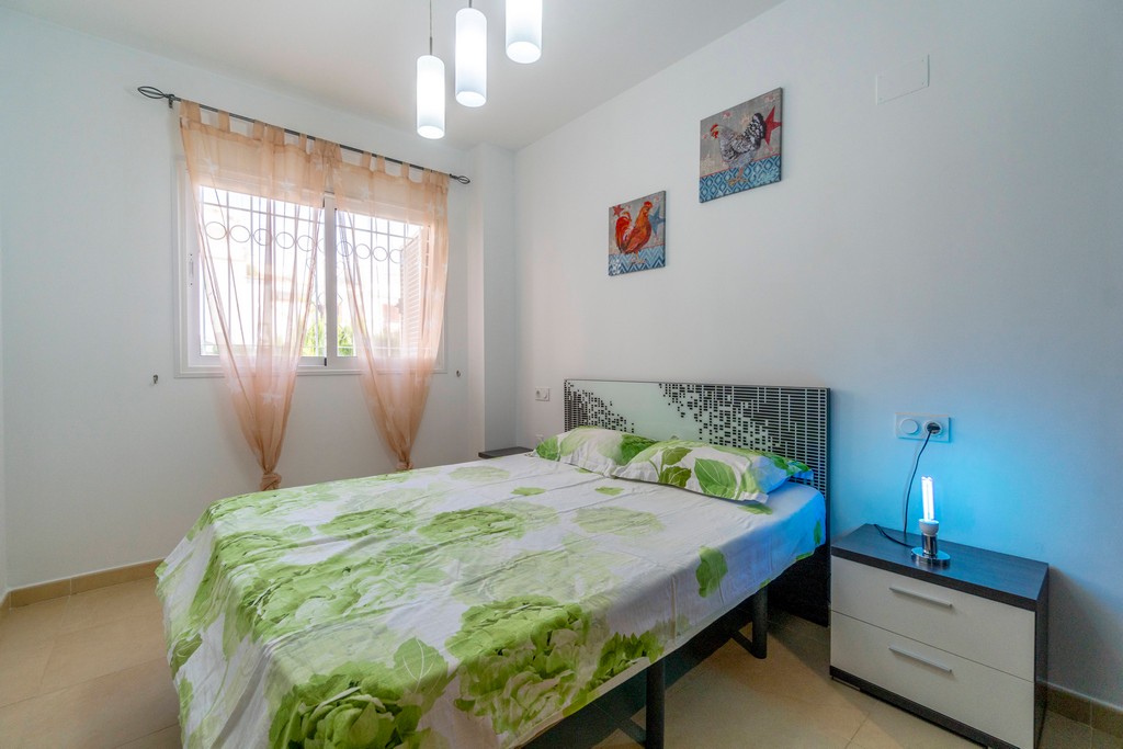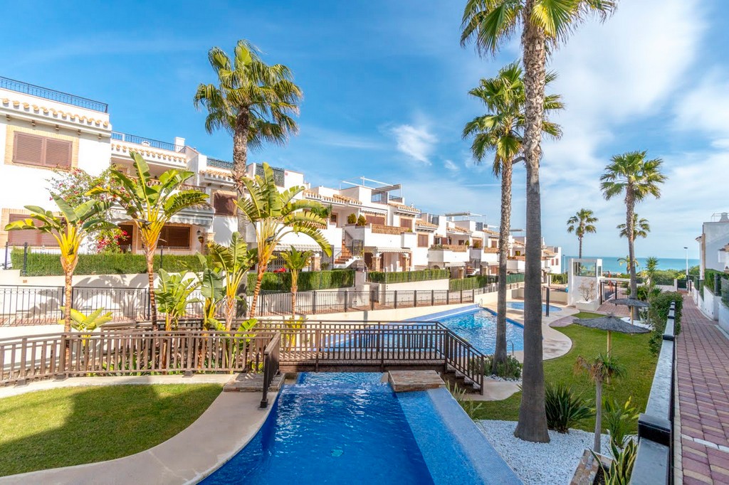 Luksuriøs bungalow i 1. etasje som ligger i et anerkjent boligkompleks, Azul beach, 150 meter fra La Mata stranden. Med et areal på 68 m2 består den av 2 soverom (hovedsoverommet har omkledningsrom), 1 bad, stue, kjøkken, terrasse og hage på ca 25 m2.
