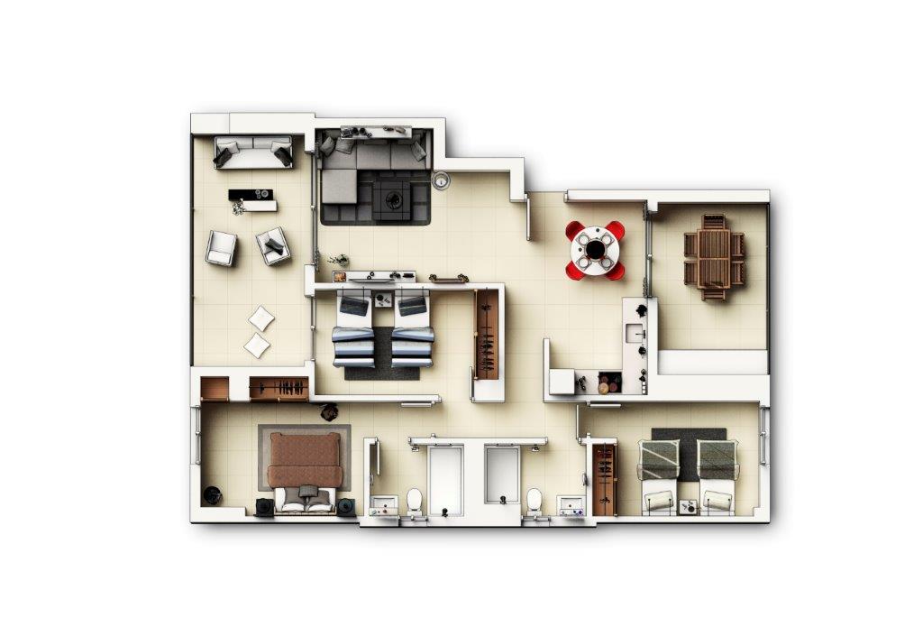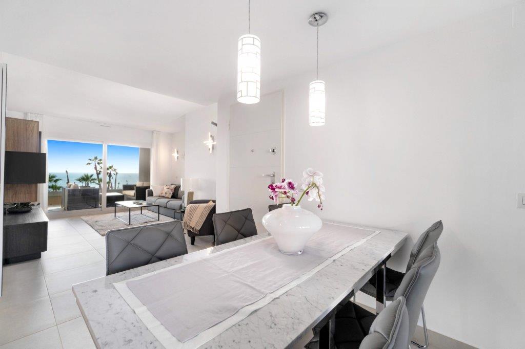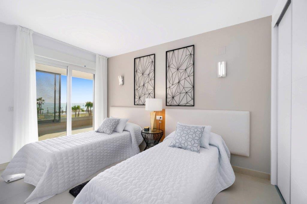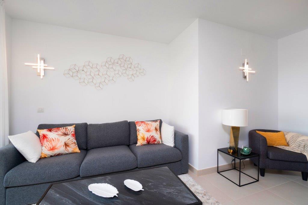 Lekre leiligheter med gjennomgående høy standard. Du kan velge mellom 2 eller 3 soverom. Alle har 2 bad. Stuen er stor og lys med åpen løsning til det moderne kjøkkenet. Det er skyvedører ut til terrassen hvor du kan nyte panoramautsikt mot havet.