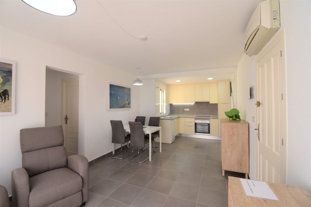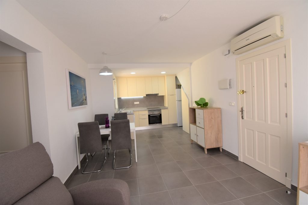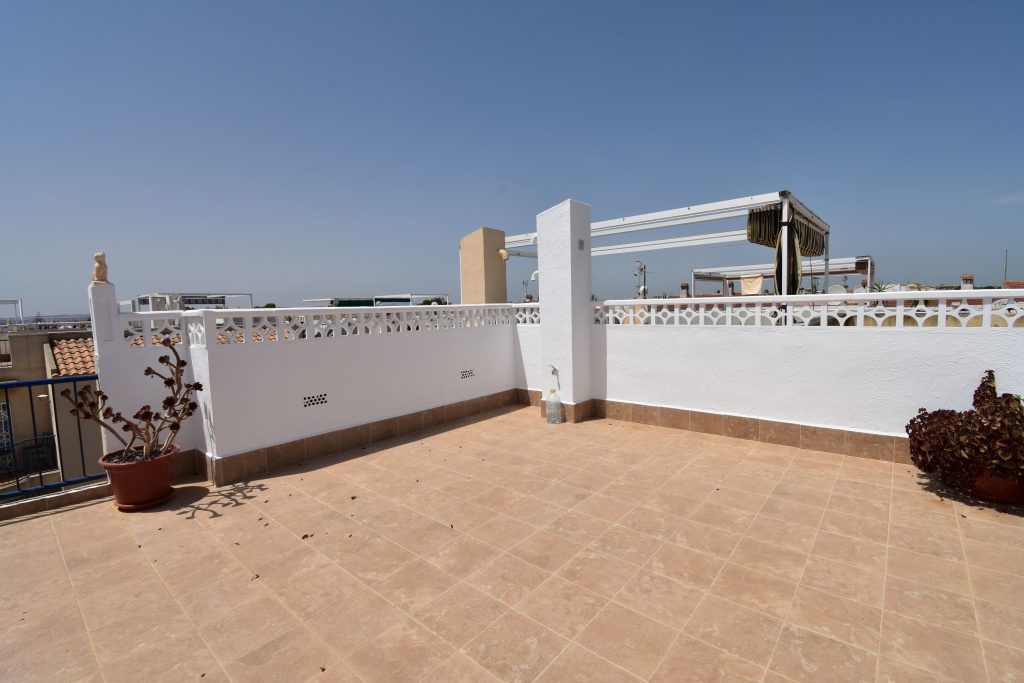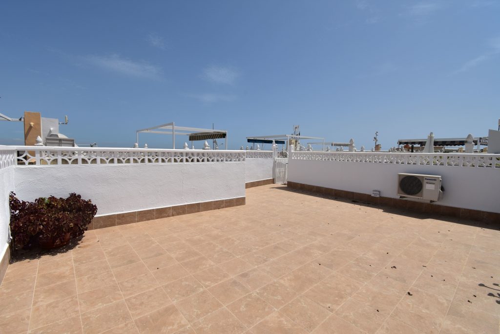 En etasje opp finner du den flotte, private takterrassen på 50 m2 med god plass for å nyte årets alle solige dager, her har du fin utsikt over lagunen i La Mata.