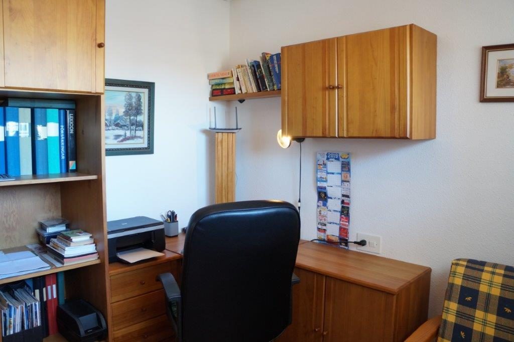 Boligen er på 108 m2 og inneholder 3 soverom, 2 bad, kjøkken med hvitevarer, stue og en stor innglasset terrasse. Ettersom leiligheten ligger på et hjørne har du fin utsikt både innover i landet, og mot havet.