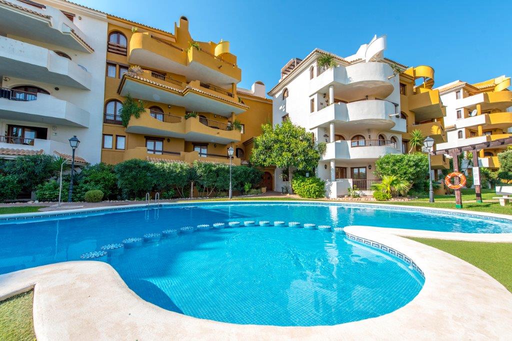 Leiligheten har en sentral og flott beliggenhet på det populære området Punta Prima, rett syd for Torrevieja.