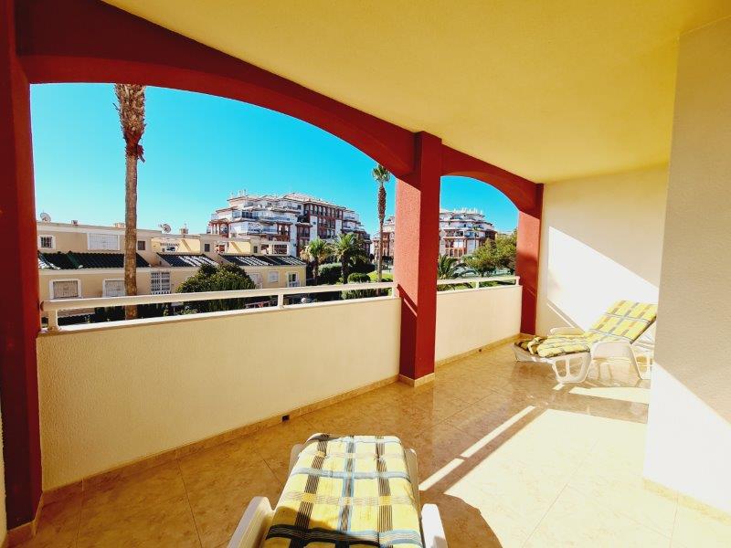 Fin leilighet i veldig hyggelig urbanisasjon. Den har 2 soverom, 1 bad, amerikansk kjøkken og stue. Det er en stor terrasse med utsikt over bassenget og grøntområdene.