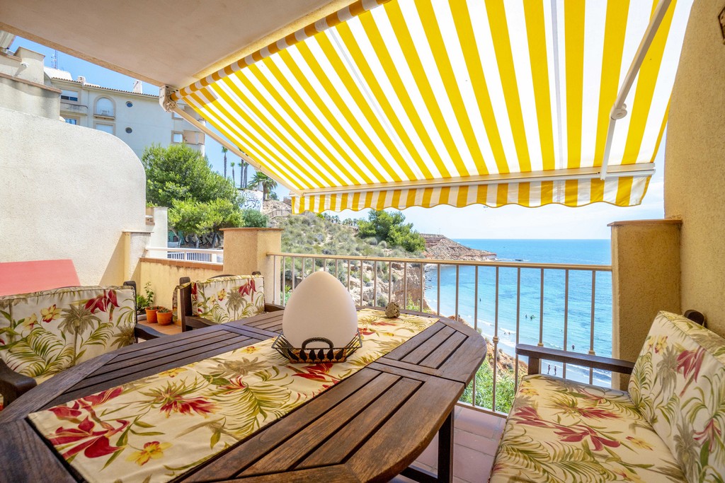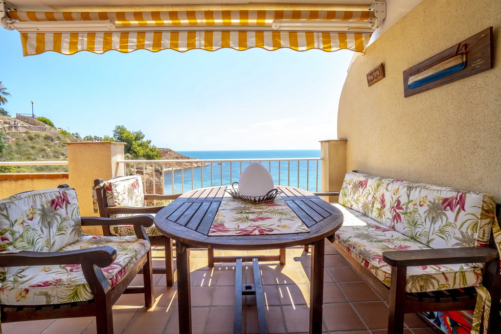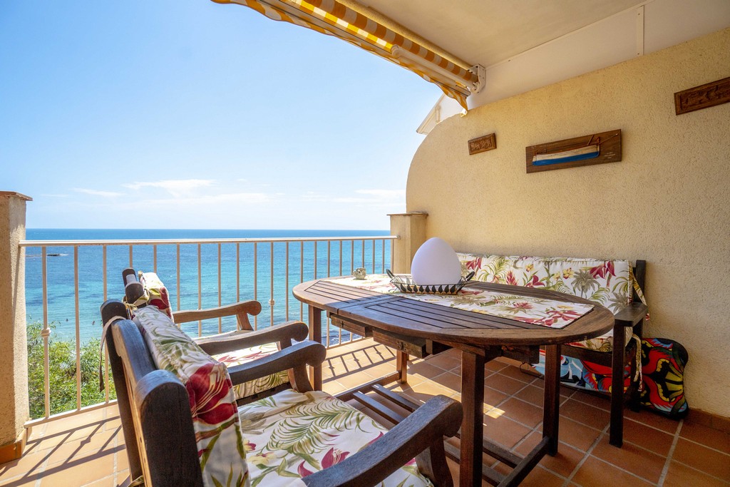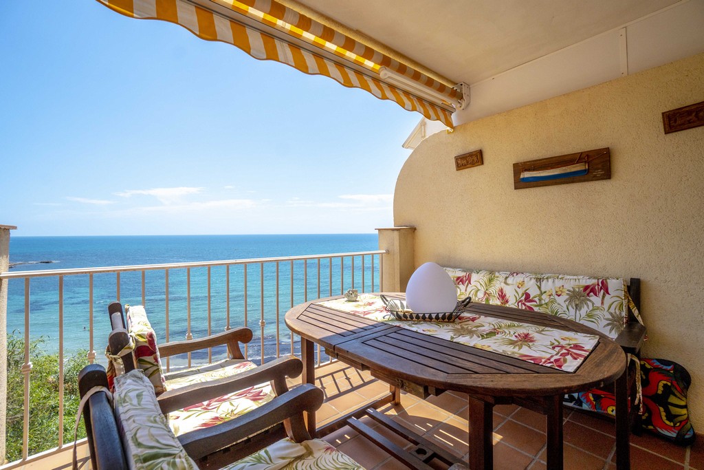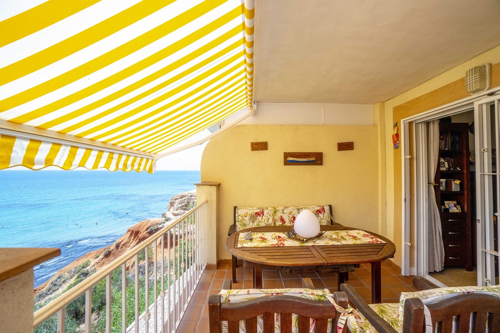 Fra den romslige terrassen kan du nyte fantastisk utsikt over havet og stranden.