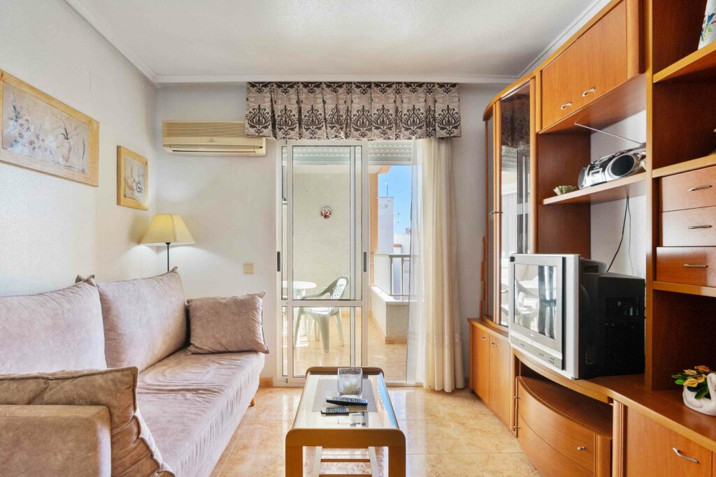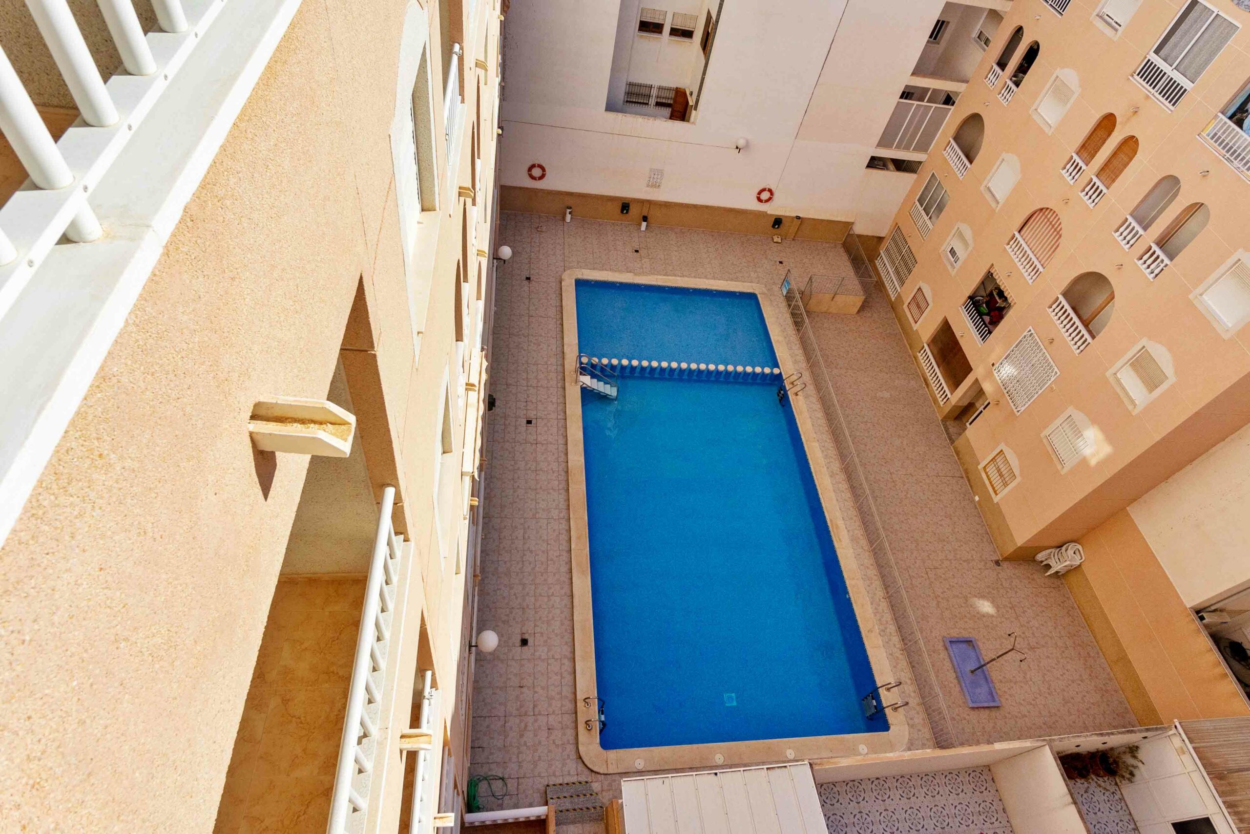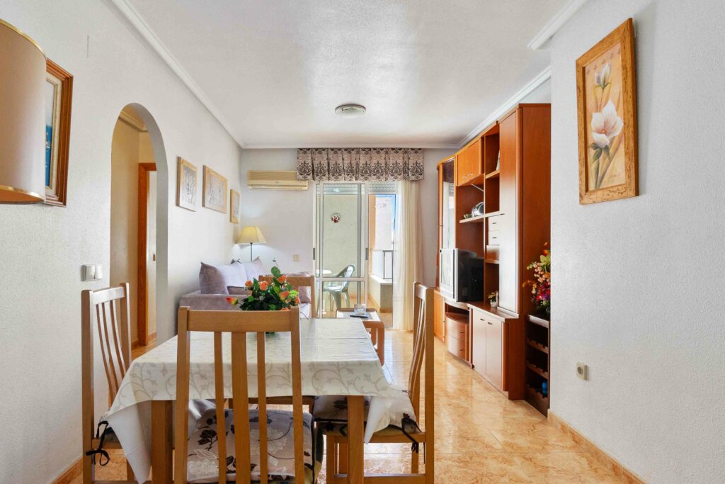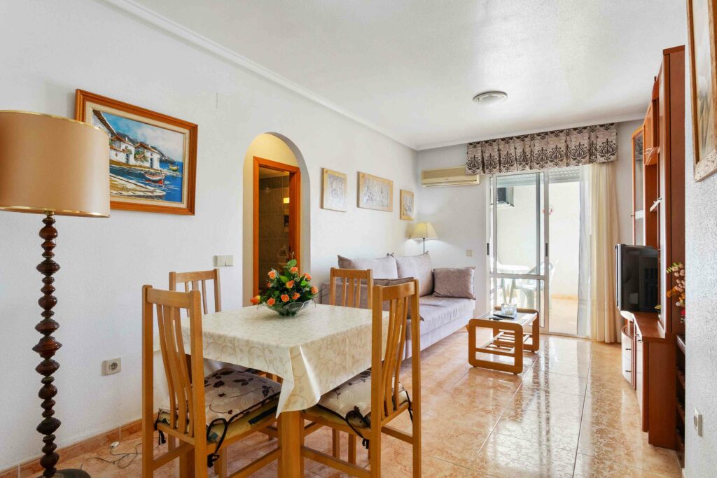 Denne fine leiligheten har en meget sentral beliggenhet i Torrevieja kun 450 meter fra Playa del Cura. Her kan du finne ro og glede i urbane omgivelser.