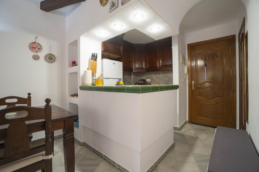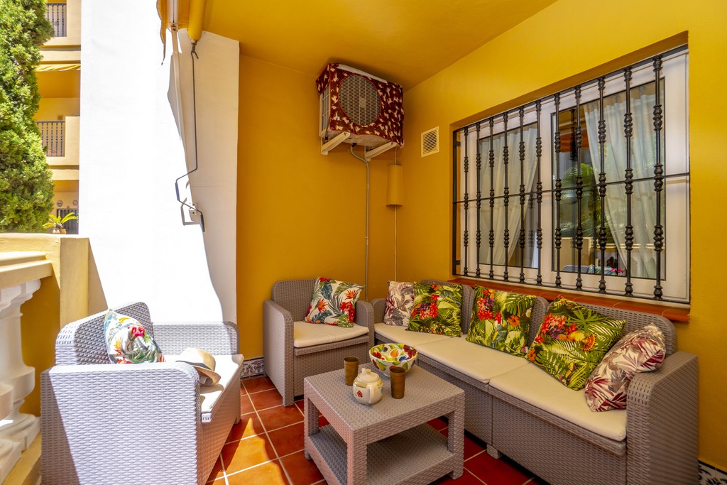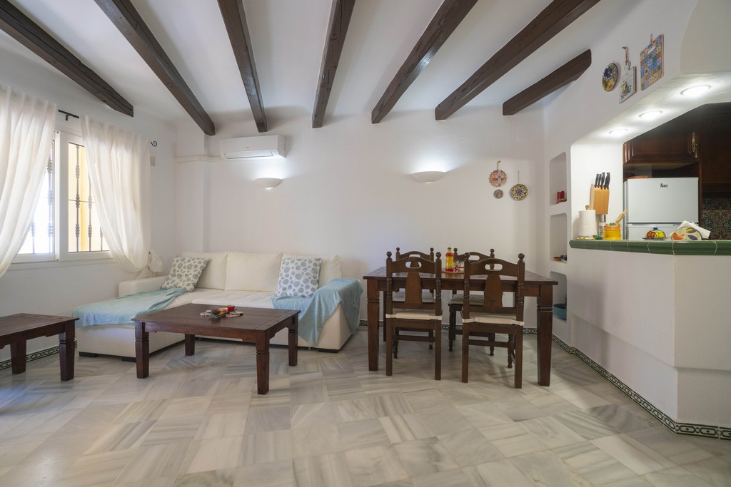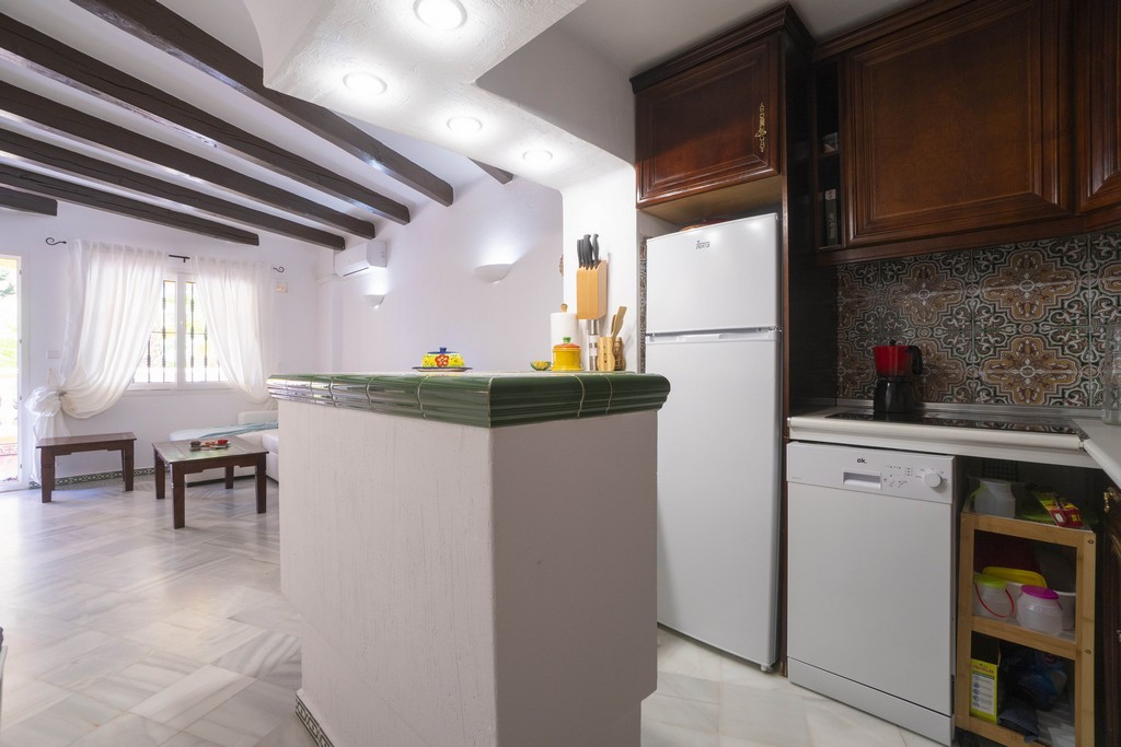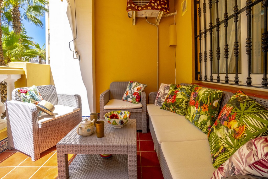 Meget sentralt beliggende i det etablerte og populære området Aldea del Mar som er oppført i særegen arkitektur. Det er bygget i spansk-marokkansk stil og dekorert tilsvarende.